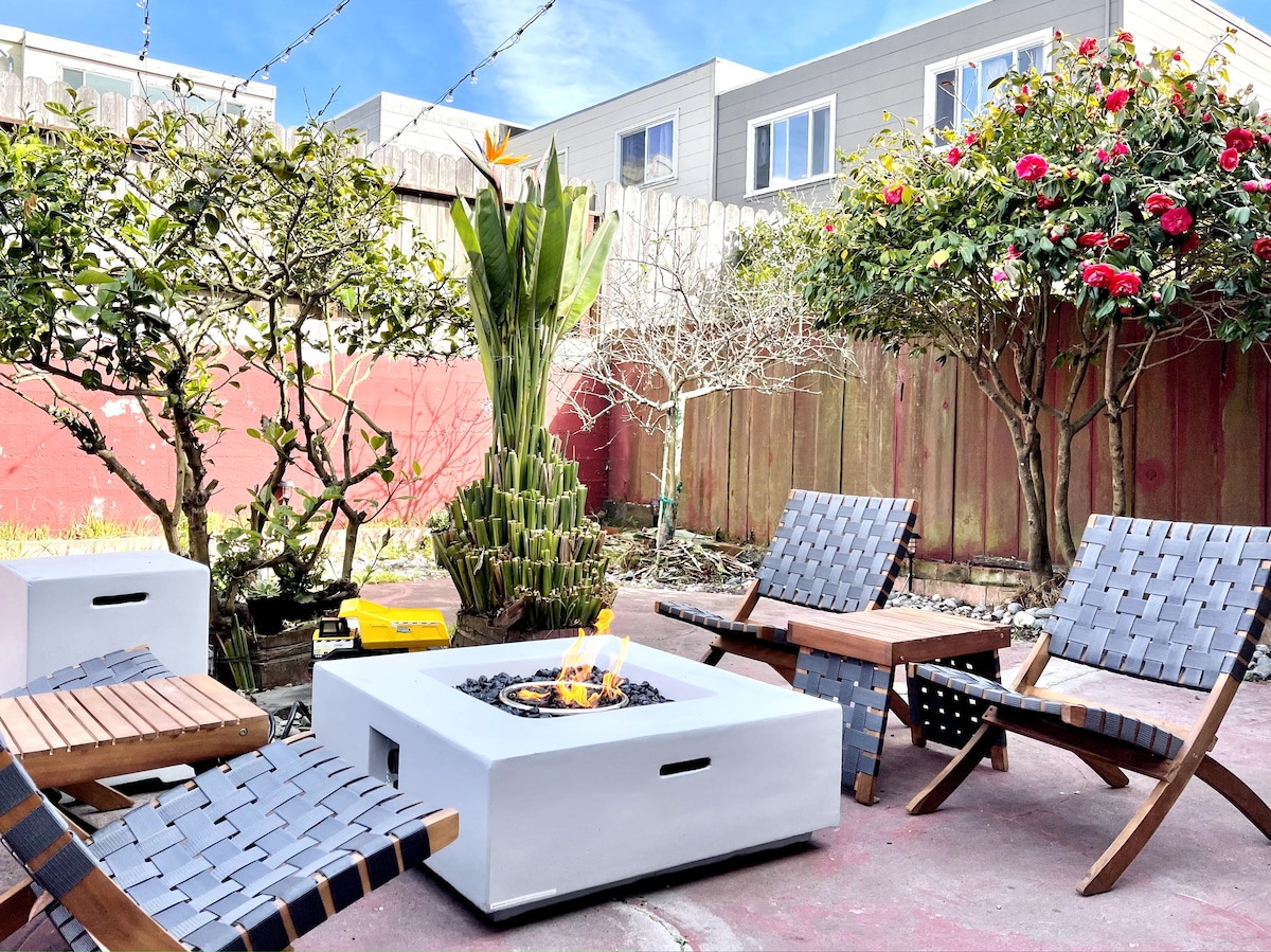 Located on the west side of the iconic San Francisco city center, the newly renovated suite is bright, private and quiet. You will love the free parking and private entrance through the beautiful garden. The comfortable shared patio with gas fire pit is available for use anytime. We welcome people from all nations, backgrounds and ages and can accommodate one child. The apartment is directly below our main living space, so you will hear muffled conversation and light footfall.
