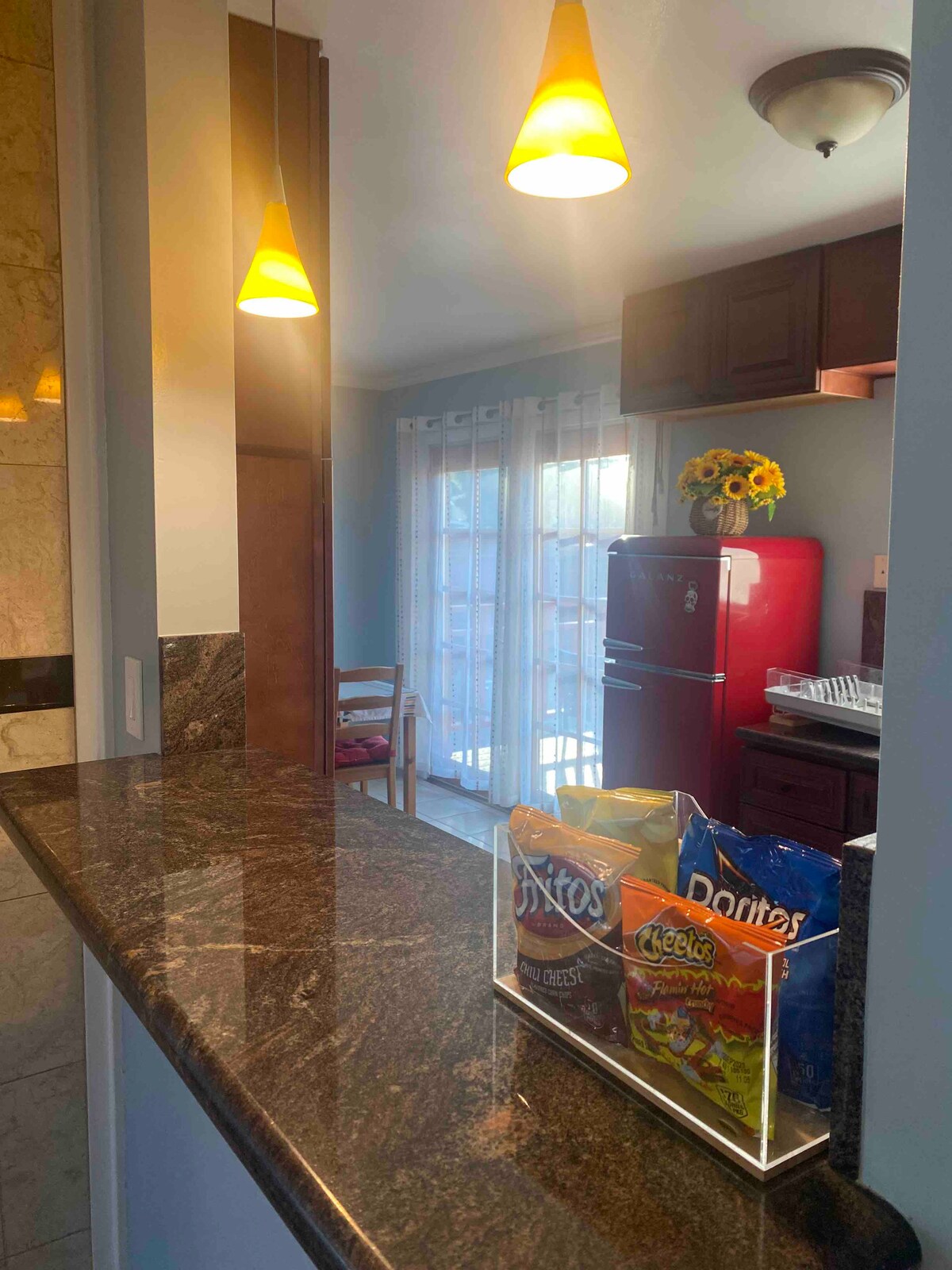 The Cabaña is a detached 325 square feet studio apartment with a full bath and kitchenette located in our expansive front yard with a separate entrance for our guests. It is ideal for 1-2 travelers. There is a private patio which in warm weather extends the space. I have completely repainted the interior and redecorated with all new furnishings. There is a new bed and new plush firm mattress, new curtains and window shades, new lamps, leather chairs, refrigerator, microwave and toaster oven.