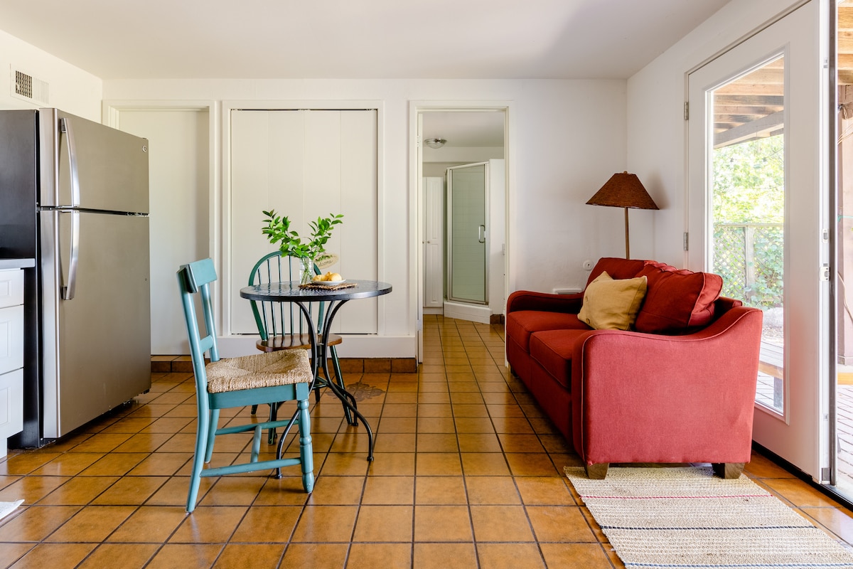 Discover the open flow of this homey artsy private studio. Enjoy floor-to-ceiling valley views. Curl up in a daylight flooded reading nook. Perched at the top of the historic Dipsea Steps, the apartment is a short walk from Mill Valley’s enchanting boutiques, restaurants, and coffee shops. Jump on trails and hike the Headlands, Muir Woods, and Stinson Beach. The studio has a kitchenette with a mini fridge, Nespresso machine and a microwave. Please note, it’s definitely not for cooking meals.
