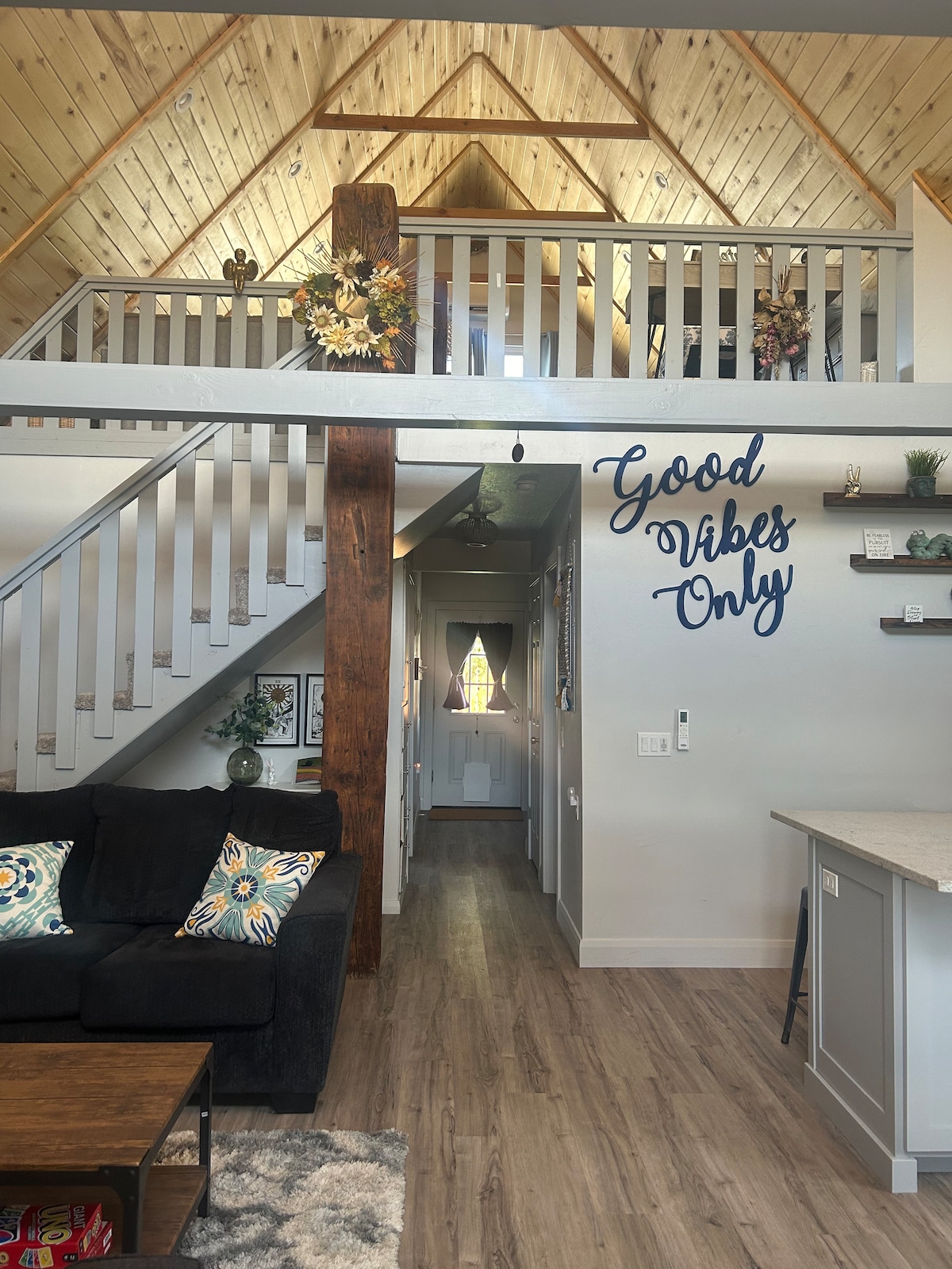Nestled behind the main house, our cozy cottage is surrounded by a circular driveway, offering privacy and tranquility. Enjoy the fresh air with large barn doors that open up to the outdoors 🌿 or close them for a snug, warm night 🔥. Featuring fun retro appliances, this space offers a queen bed 🛏️ in the loft and a fold-out couch below to accommodate your needs. Great Location (Centrally located) 5 minutes from Paragliding "LZ" Landing zone, Hot Springs and ATV trails. RV HOOKUP Available