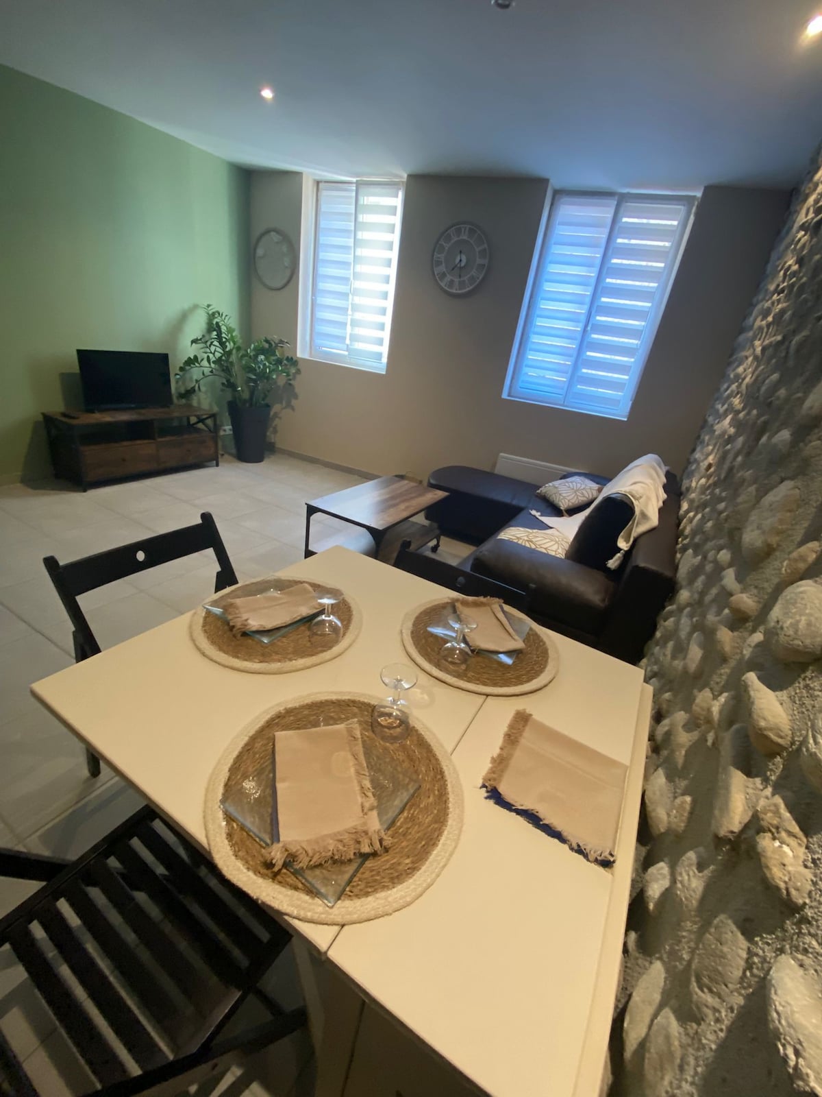 A 20 minutes de la mer et 30 minutes de la moyenne montagne , location de 53m2 très cosy , toute rénovée, très calme et à l'abri des regards. vous pourrez prendre votre petit dejeuner sur la terrasse ombragée le matin. le logement dispose de la climatisation, d'un lave linge, frigo congélateur. four, micro ondes, cafetiere filtre et nespesso et bien sûr télévision Terrasse et jardin plein sud. Commodités à proximité. 1 chambre avec un grand lit 160cm 1 clic clac de 140 Bonnes vacances