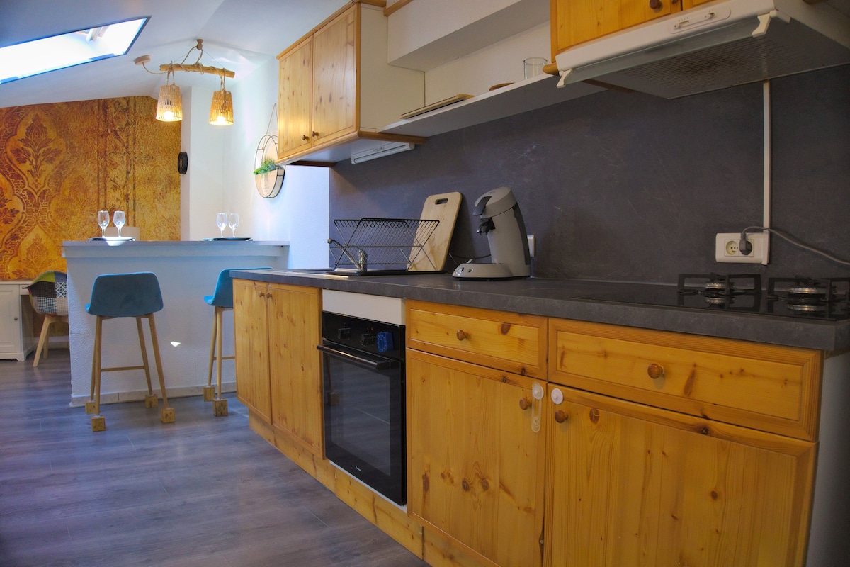 logement idéal pour un séjour détente en famille...équipé d'une full cuisine, chambre lit double de 140x190 et un canapé convertible 140x190 ! télé 📺 , Netflix ,accès à WiFi gratuit,quelques jeux pour passer le temp puis aussi des livres si vous êtes amoureux/se de la littérature.... pour votre confort des draps,serviettes de bain,shampooing,coussins etc! café/ thé et Madeleine sont là pour vous 😉 venez découvrir ☺️