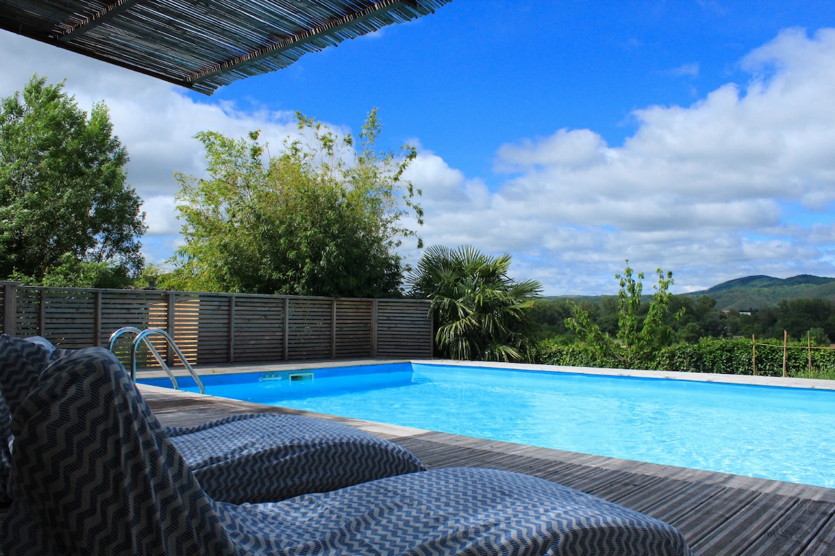 Grange indépendante , rénovée avec soin, à 30 m de notre maison. Suite de plain-pied, fermant à clef avec: - entrée séparée - l'air conditionné - salon avec canapé-lit (140) et TV 140 chaines, Canal+ , Prime vidéo - Nespresso, bouilloire, mini frigo. Snacks - Côté nuit un lit 160 x 200; lit bébé - salle de bain avec douche à l'Italienne, WC séparé - bureau (fibre 1 Gb/s) - borne de recharge VE T2 7.4kw. - parc, barbecue plancha & table pique-nique. - Piscine 7 m x 3,5 m à partir de mai 2026