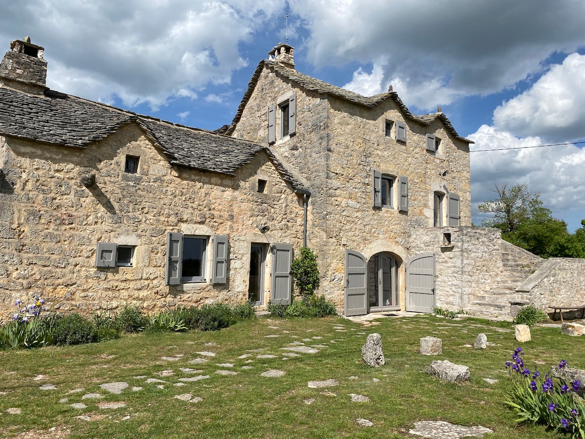 This traditional Causse hamlet is classified as a “4-star” furnished holiday home. Nestled in a wild and grandiose setting of 217 private hectares, it's sure to make your heart beat faster. Here you'll find rare calm and serenity. Overlooking the Tarn gorges, you'll be far from any visual or noise pollution. Unmissable sites are within easy reach (Roc des Hourtous, Aven Armand, Point Sublime, villages of character and hiking trails, Aubrac).
