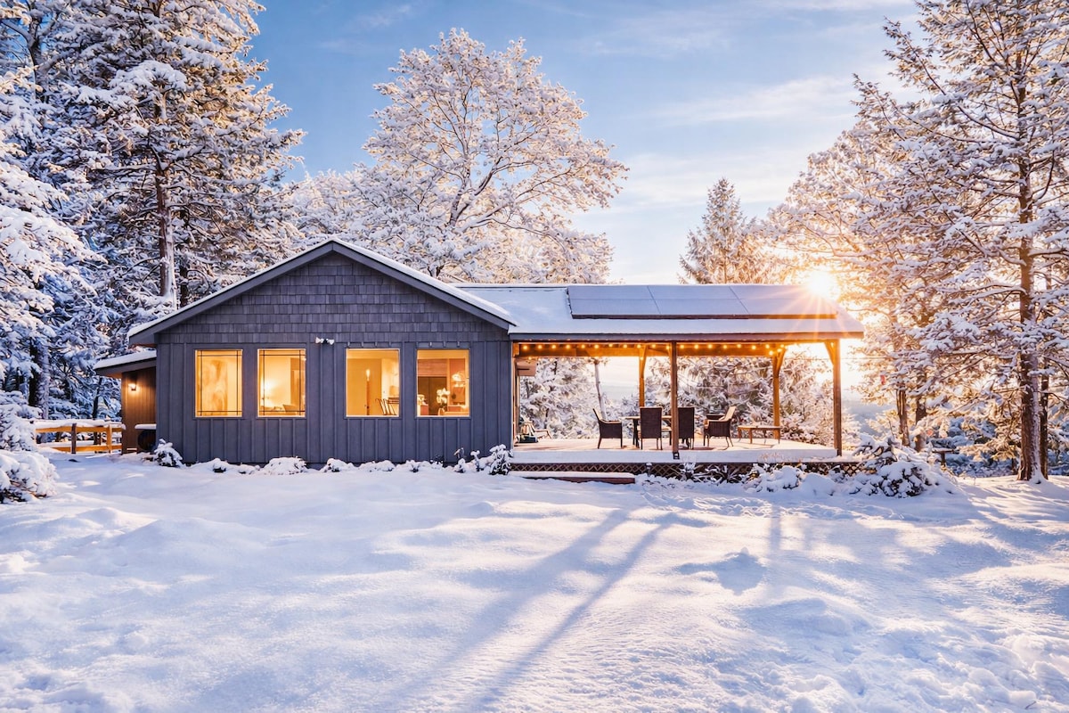 Newly renovated private cabin on the ridge top of an 130 acre magical property with stunning western views and overlooking a historic farm & crystal clear lake. Explore the hiking trails, dip in the wading pools of the upper cascades, bike to town or simply enjoy the peaceful sounds of the 90ft waterfall on the property. Relax in a beautifully designed private retreat, complete with a gourmet kitchen, cozy fireplace, and comfortable bedroom- learn more at cascadafarm.com