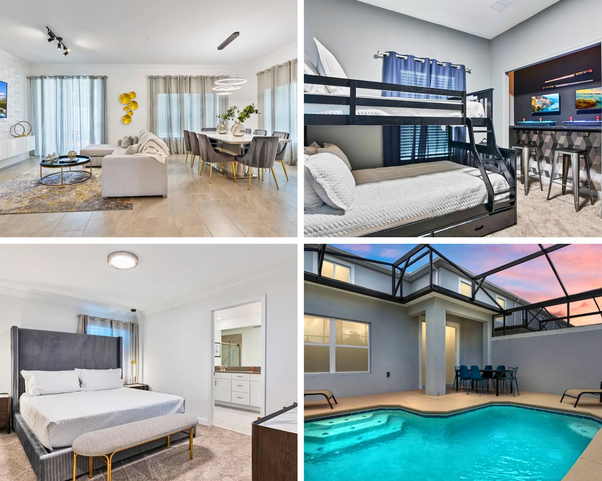 Unable to book this house? Don't worry! Check my profile for similar homes that might suit your needs. WE HAVE A 24/7 CUSTOMER SERVICE! Escape the routine of visiting the parks every day and step inside of this brand new house with 3,014 sqft, 5 bedrooms, private pool&spa, and a game room specially designed to entertain your family. You can also have some fun at the Clubhouse, which offers a bar/restaurant, a big pool with water slides, a lazy river, a spa, a gym, a playground, and mini golf.