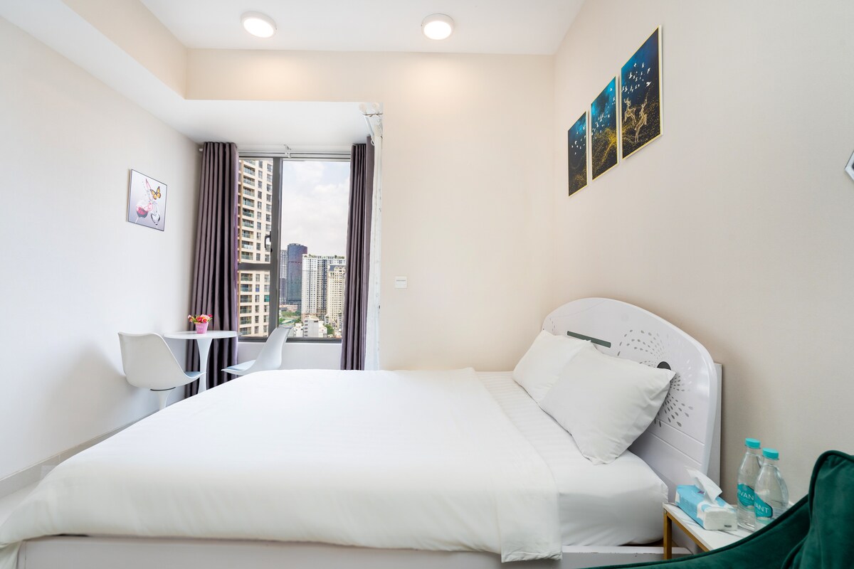 Our studio is just a few steps away from popular tourist attractions: Ben Thanh Market, vibrant Bui Vien area, Nguyen Hue walking street & many other must-see spots. Enjoy the convenience of a central location for all your explorations ✯ Central location & 5 mins to MRT ✯ Elevator access ✯ Self-check-in / check-out. Late-night check-in support. ✯ Spacious front-facing balcony ✯ 40m2 - Queen-sized bed - private bathroom ✯ Smart TV with Netflix ✯ AC, microwave, a kitchenette & fridge available