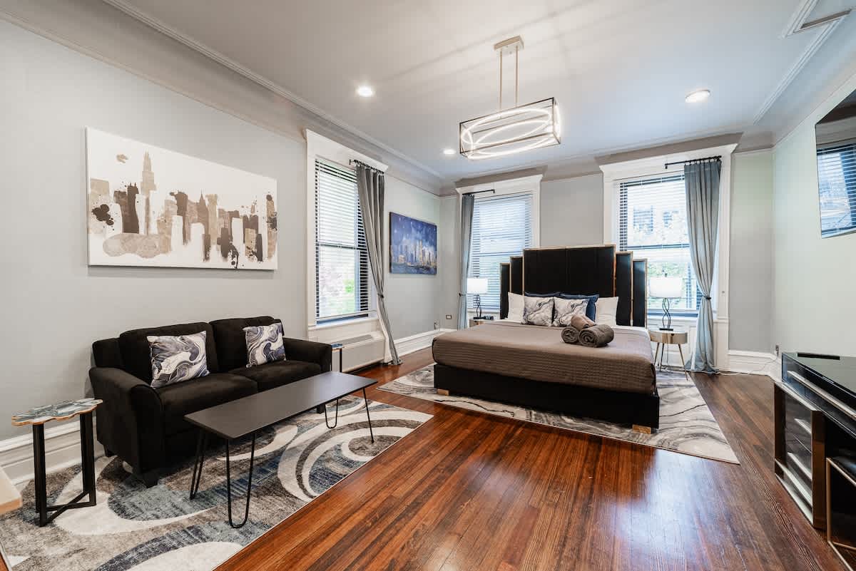 Enjoy Chicago in our modern & spacious 1-bedroom loft in the South Loop. Central location to Grant Park, Soldier Field, Museum Campus, McCormick Place and more! Our location has a walk & transit score of 97, providing easy access to all the hot spots on your itinerary! Expect lovely natural light, luxuriously tall ceilings and room to accommodate your entire group. Guests are always pleasantly surprised by the size of the space and the modern amenities we provide!