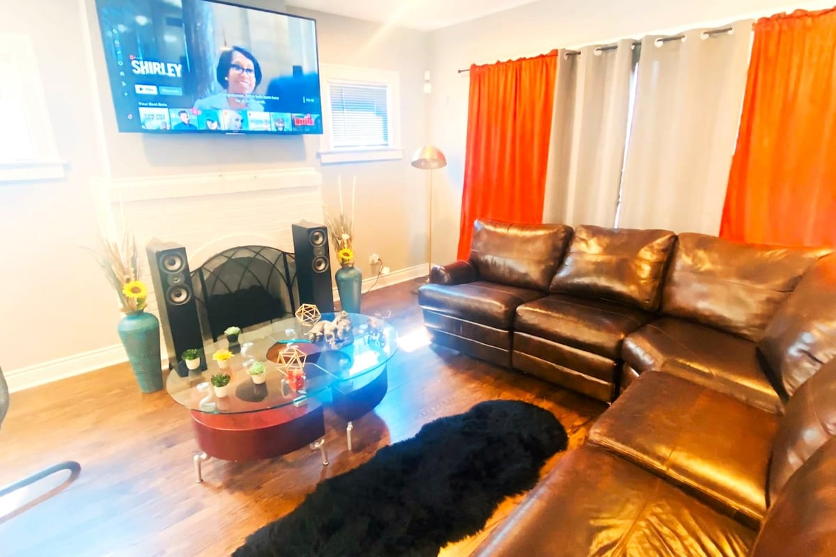 Enjoy our spacious 2-level home this fall and winter, perfect for families and groups. The lower level is your entertainment hub with a 120" projector, retro arcade, ping pong, board games, reclining sectional, 1 bedroom, and 1 bath. Upstairs features two bedrooms, a full bath, an electric fireplace for cozy nights, a fully stocked kitchen, and a furnished patio. Kids and young adults especially love the fun setup, making it a memorable Chicago stay for all. We welcome last minute bookings!
