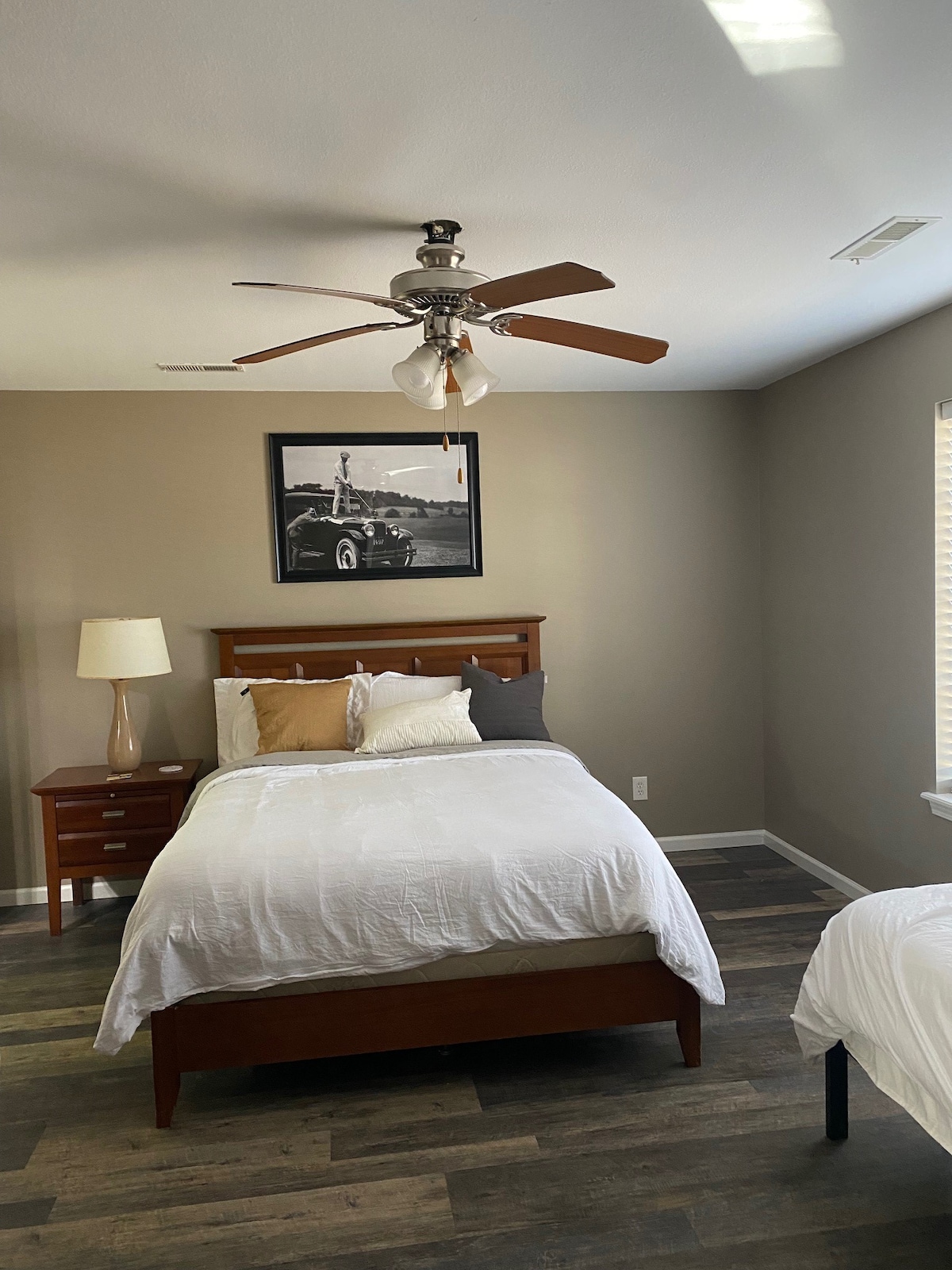 The Lower Deck at Wet Feet Retreat is a private, lakefront lower-level apartment available only during the off-season. Ideal for a quiet getaway or short-term stay, it features a queen bedroom, smart TVs, high-speed internet, a cozy living and dining area, and a kitchenette with sink, compact fridge, microwave, air fryer, and induction burner. Includes private laundry, stand-up shower, free parking, dock access, kayaks, and a private patio with fire pit. Shared HVAC set at 70°.