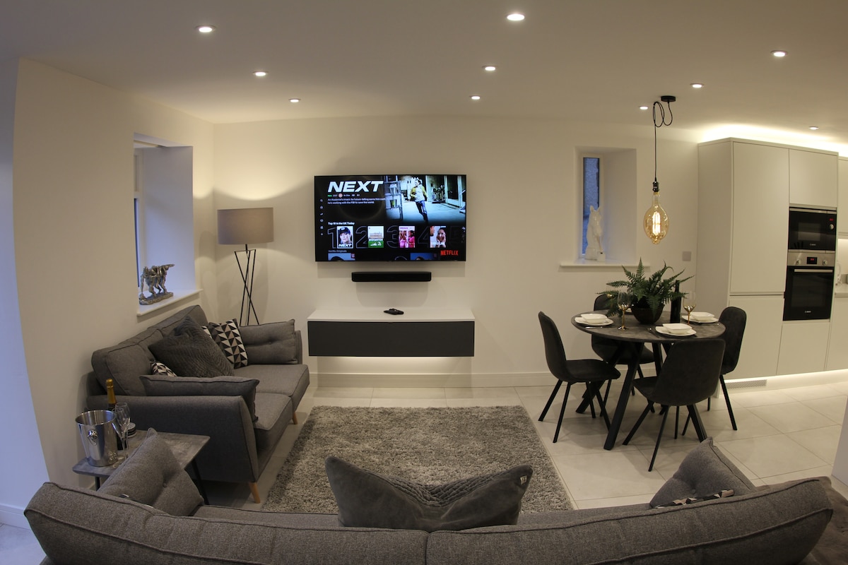 Our light modern 2 bedroom apartment is situated on the second floor of our impressive building in the centre of Millom with stunning views to the Dudfon Estuary and beyond. Excellent location with pubs, restaurants and public transport all within 100 metre walk. Hodbarrow nature reserve and some fabulous beaches are all within a 25minute walk. Millom is a great location to explore the Western Lakes and Cumbria Coast. We look forward to welcoming you.