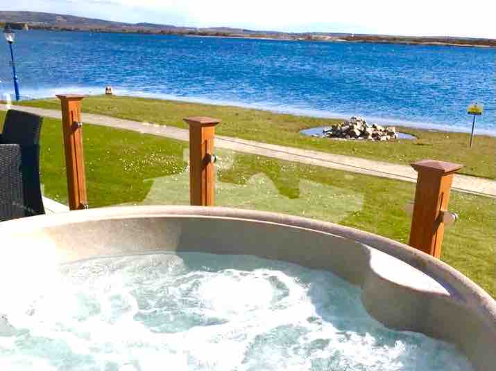 配备热水浴缸和渔业的FERNY HOOLET度假木屋。