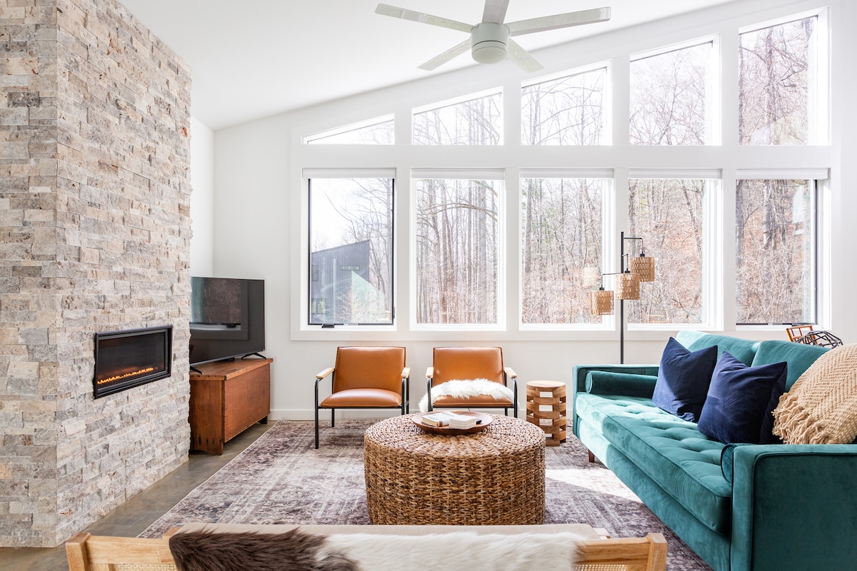 Chic Modern, Luxurious, Cozy-styled & Large private KING Bed & Barn view one-bedroom in-law apt. (1,050 sqft) w/ Fireplace. On 2 Beautiful Acres under towering trees, while only being 3 min.(1 mi) to the Biltmore Estate. 5-min. (4 mi) to the Heart of Downtown Asheville, NC; Blue Ridge Parkway, & South Slope DT breweries, coffee houses, and restaurants. Romantic, Quiet, Retreat Cottage, Nestled in Nature. A unique gem, close to it all