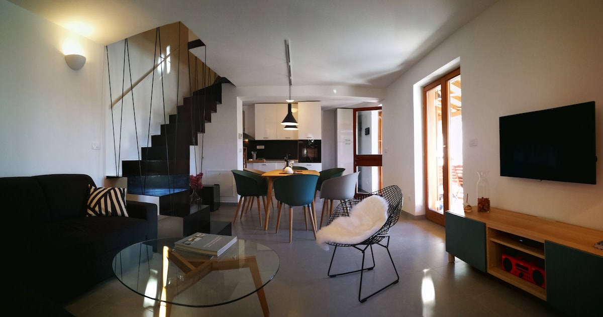 Brand New Loft Apartment which consists of big kitchen with dining zone,two bedroom,two bathroom,laundry room and balcony where you can enjoy in beautiful view of the sea and Pakleni Islands.We have available free parking space in a front of the house.The house is situated in a quiet zone ,but very close to all amenities.Center is just 10 minutes from the house and 5 minutes to the first beach,supermarkets and restaurants.