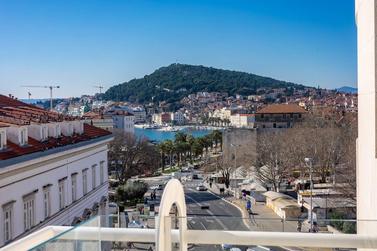 This amazing and stylish seafront apartment with a STUNNING sea view is located in the very center of the beautiful “lungomare”, the Riva promenade, at the seashore and just beneath Marjan Hill, a very popular recreational zone for outdoor activities like biking, walking and jogging. This modern 4star brand new renovated 73m2 apartment is extraordinary positioned for visiting the UNESCO site of Diocletian’s Palace, restaurants, bars, nearby beaches and other popular places in the city.
