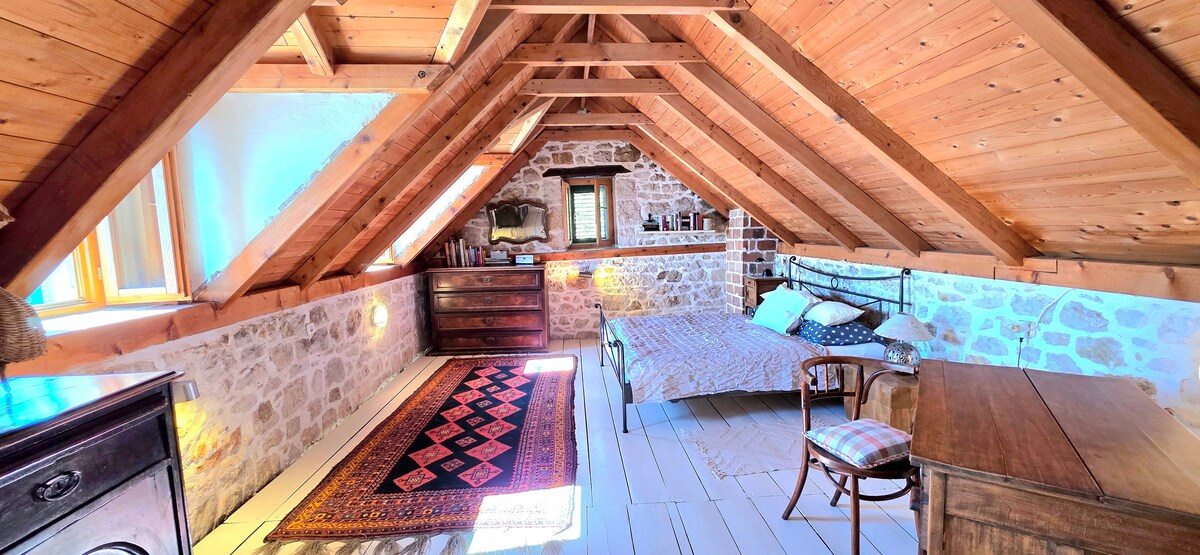 If you really want to experience a charms of holiday, we invite you to visit us in Podašpilje, raised on highlands of the left side of the picturesque river Cetina canyon, 6km from Omiš. For real nature lovers and those who prefer relaxing in a sort of isolation, far from noise and hurry of every day life, this semi-detached stone house, will be the right choice. It is a two part stone house with one bedroom, kitchen and dining area, bathroom, open terrace with table and chairs, and barbecue.