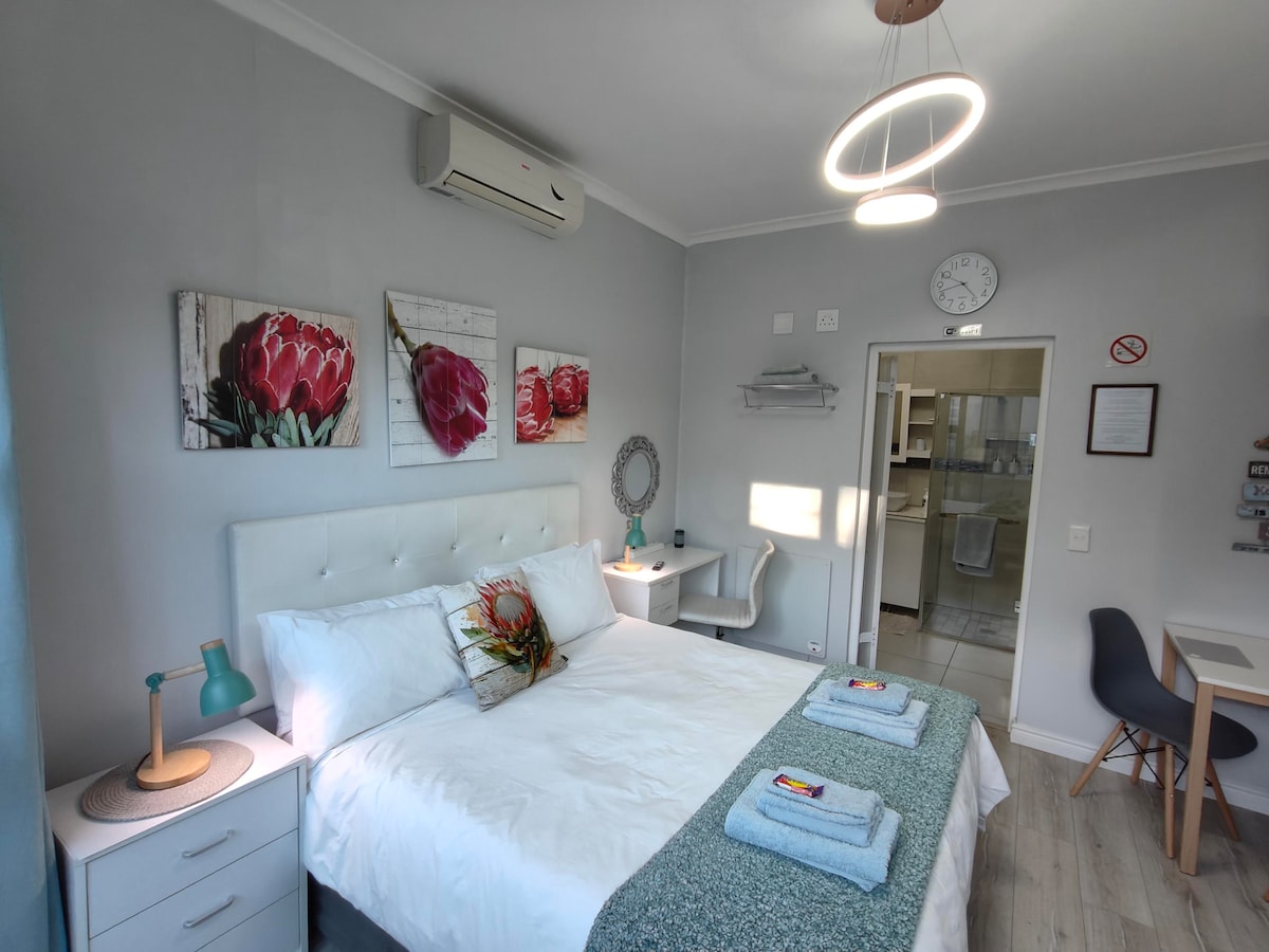 Tranquil and cozy open-plan studio apartment with sleeping area, bathroom, shower and kitchenette. Double bed, dressing table, wardrobe, recliner, couch, TV, table & chairs, refrigerator, induction cooker and microwave oven. Fast and reliable 100Mbps WIFI with power backup.Separated from the main house with own private entrance. Situated 5 mins drive from the vibey Bloubergstrand Kitesurfing beachfront, MAC windsurf club, bus routes, all major amenities and shopping centres. Secure storage.