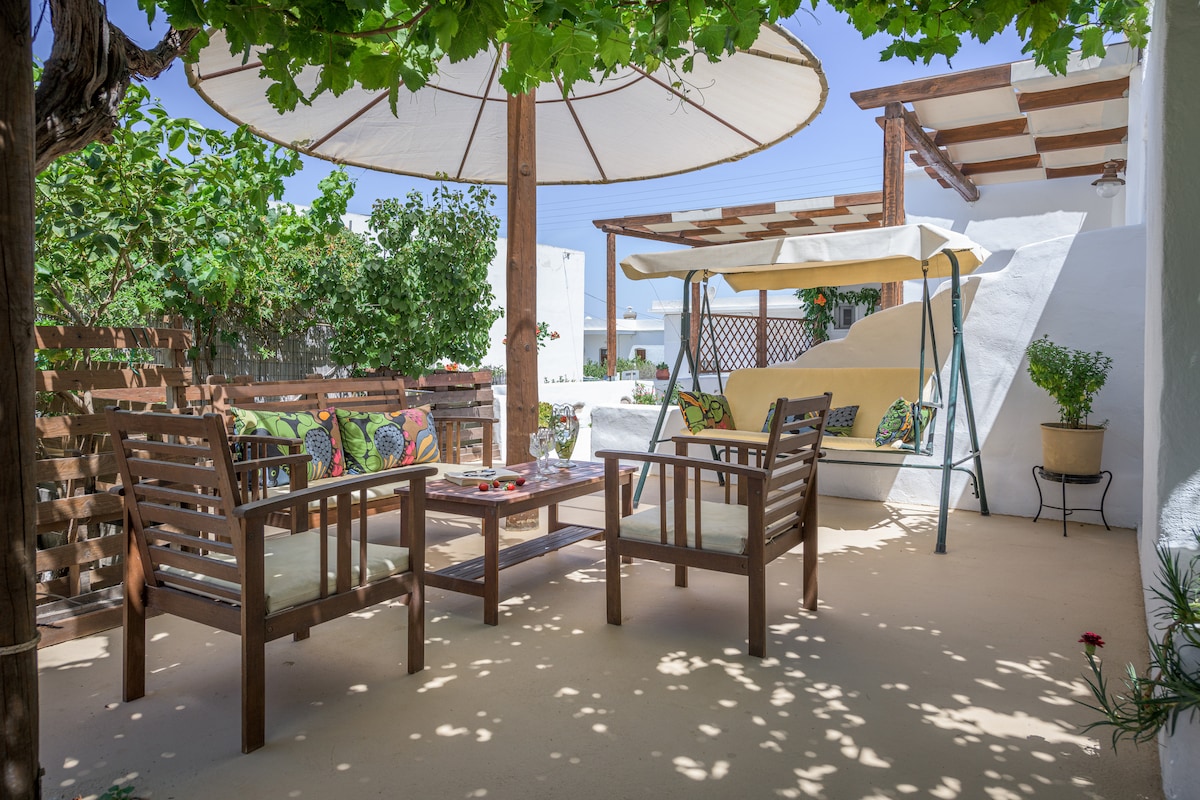 Aphrodite Studio is part of a traditional Cycladic house with an elevated view of the seaport of Adamas, built by Cretan refugees in 1860. It has since undergone significant improvements, with all modern conveniences such as electricity, running water, a modern-day toilet, and a kitchen. It still maintains its Cycladic character, with high ceilings and a sturdy, wooden roof. It is ideal for 2 people.