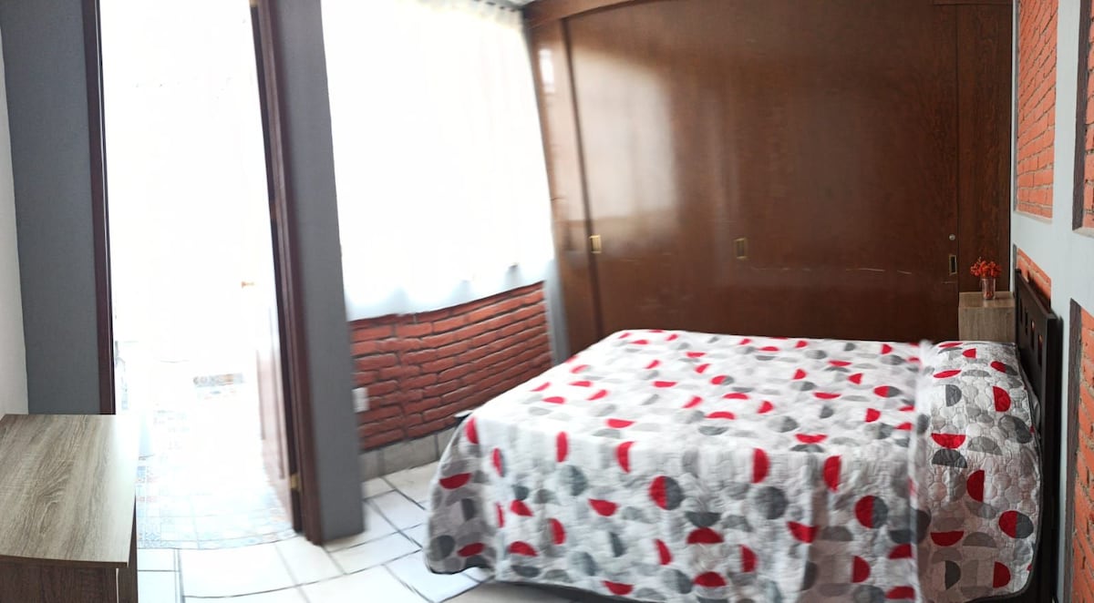 Preciosa casa en Condominio . 600 mts de Hermoso jardín con pérgola, vista a la montaña. Hay cruce de personas por el jardín. Hay otra propiedad al fondo del terreno. La casa cuenta con camas suficientes para 6 huéspedes: 3 camas matrimoniales. Hay 2 camas más en la torre.Con costo adicional por cada huesped. SOLO ESTÁ DISPONIBLE PREVIO AVISO Tenemos 2 Baños dentro de la casa. (no hay Baños en la torre) . Cuenta con TV con y WIFI, asador. Somos Pet friendly .