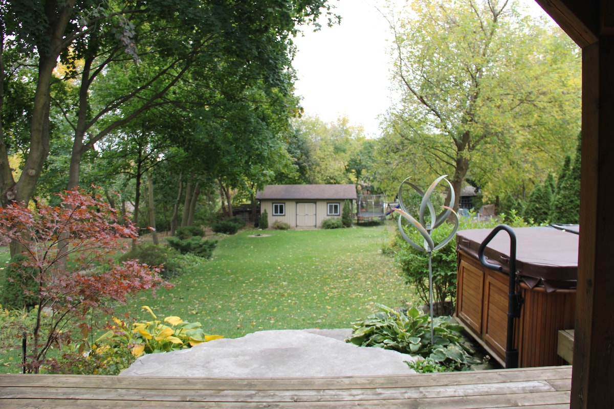 Cute basement bungalow in Hespeler Village. Short walk to the river, trails, and village pubs. Private basement apartment with separate entrance, gas fireplace, TV, wifi, minifridge, Kurig coffee machine, kettle, and private washroom. Minutes away from the 401. We live in the apartment upstairs and are happy to answer any questions but we give our guests space and privacy during their stay.