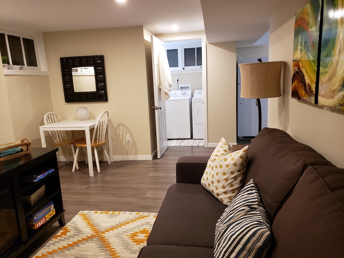 Cute basement bungalow in Hespeler Village. Short walk to the river, trails, and village pubs. Private basement apartment with separate entrance, gas fireplace, TV, wifi, minifridge, Kurig coffee machine, kettle, and private washroom. Minutes away from the 401. We live in the apartment upstairs and are happy to answer any questions but we give our guests space and privacy during their stay.
