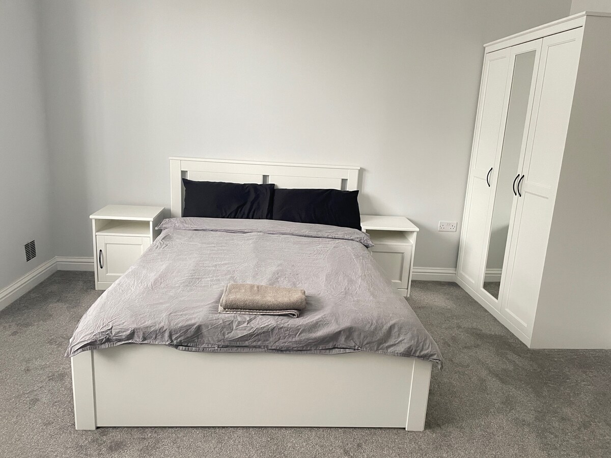 A tranquil, self-contained studio apartment with a private entrance ensures complete privacy. The bedroom includes a comfortable double bed, wardrobe, work desk, ample storage, Smart TV, and convenient amenities. The kitchenette is equipped with a fridge, washer-dryer, microwave, air fryer, and more. The en-suite bathroom features a walk-in shower. Enjoy the cozy, private garden with table and chairs for a relaxing outdoor moment.