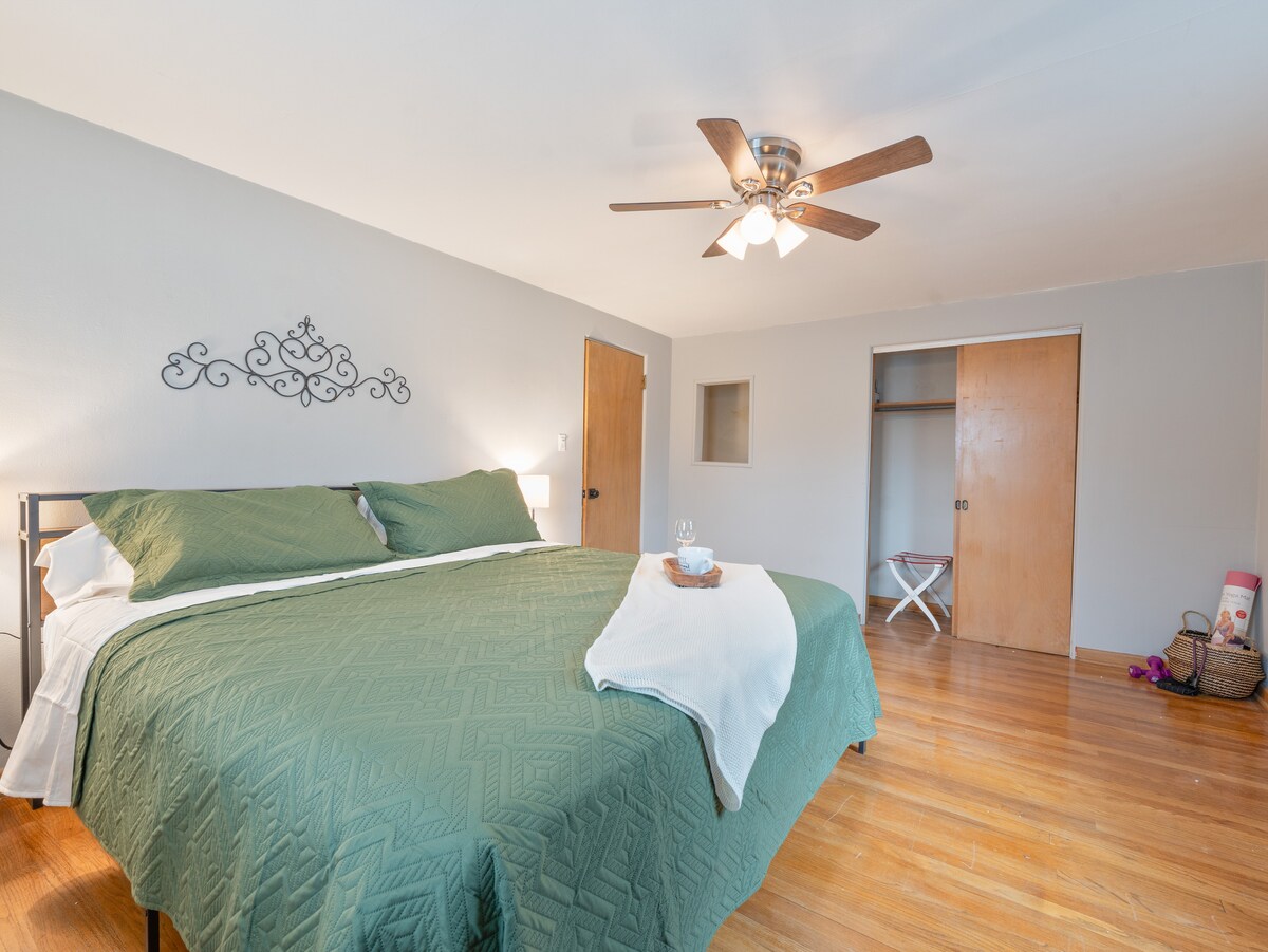 Welcome to our 1924 Craftsman Bungalow! Marrying Prairie House style with the innovations of the Chicago Craftsman, our brick bungalow is awaiting your stay. You'll enjoy the upper suite, with private entrance, two bedrooms, kitchen, and full bath. Newly redone porcelain marbled floors inspire luxury with each step, along with the new 'Article' sectional, 50" TV with streaming, 100% Cotton bedding and towels, a kitchen full of perks and appliances, and lush greenery to keep the air clean.