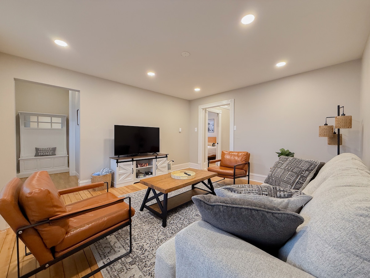 Welcome to The Bentley Hotel, a luxury selection of townhouses decorated with everyone in mind. We aim to provide a quality experience and memories that will last a lifetime. This townhome is finished with top of the line amenities including a 60” smart TV, board games, organic coffee and teas, a full kitchen with Caraway non-stick pans, workout mats, dumbbells and more. This is your new home away from home and the perfect place to gather whether you are in town for business or pleasure!