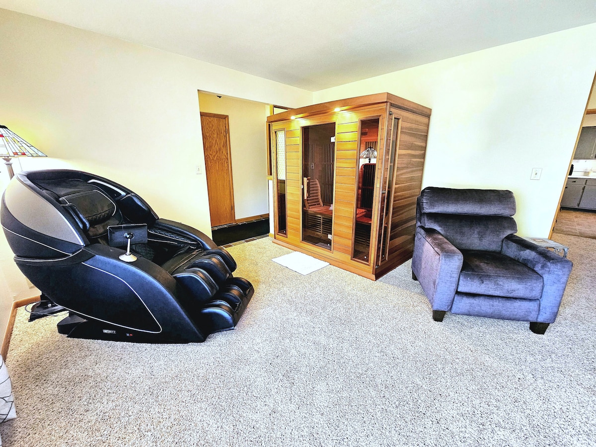 This unique home is private & close to the freeway. New features as of 10/25 include a completed game room, high end massage chair, updated kitchen & an outdoor dining patio. Also features an infrared sauna, weights & stretching equipment, a 75” tv w/ DirecTV, ESPN+, Xbox Series X, 2 drumsets, board games & nerf guns. Also available upon request is a grill/smoker, fire pit, lounge chairs & super soakers. 3 bedrooms & 2 full baths sleeps 6 adults comfortably, guests 7 & 8 by provided blow-up bed.