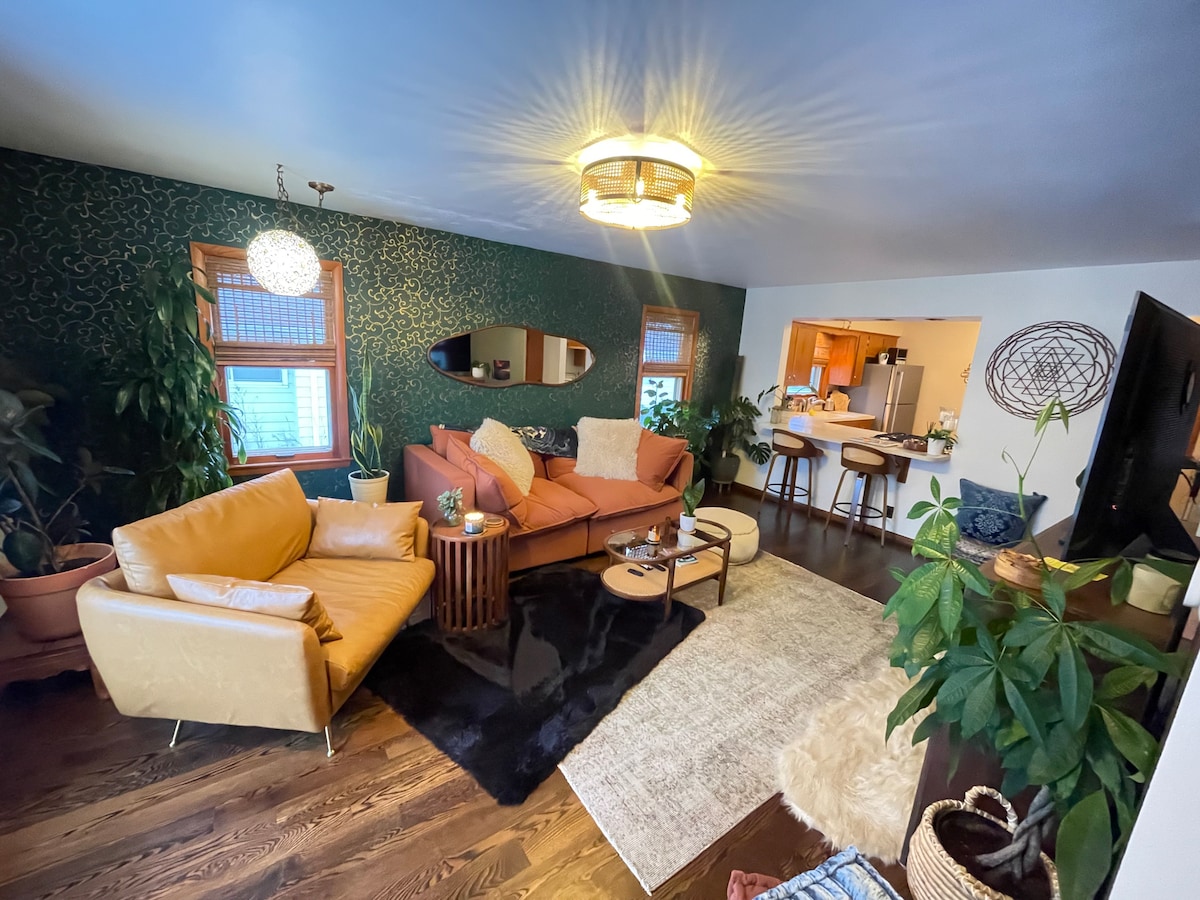 A classic Milwaukee East Side house, but with parking! Beautiful gardens filled with native Midwest plants, so pollinator spotting from the porch is common. We are within a 15 min walk from Bradford beach, bars, restaurants, coffee shops, small business shopping, and a riverside nature center with trails. Pack and play baby crib available on site and pets allowed. We live right upstairs with our two dogs, so if you need anything or want some recommendations of things to do we are happy to help!
