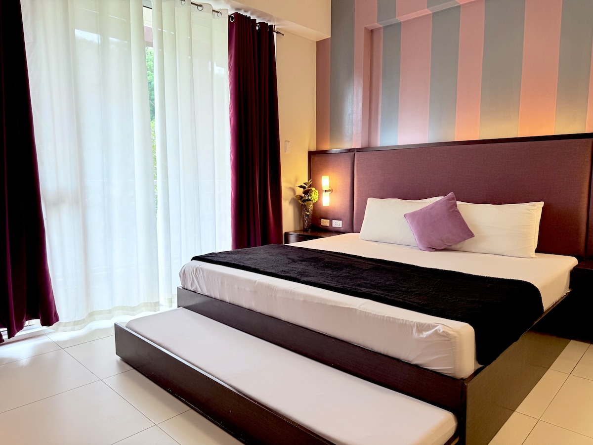 📢 PLEASE READ BEFORE BOOKING "Home Away from Home" – Studio Unit This cozy studio features 1 full/double size bed 🛏️, perfect for 2 people, plus an additional full/double size floor mattress (about 1 inch thick) 🛋️ that can comfortably accommodate 2 more guests. The extra mattress will only be set up if your party exceeds 2 guests. It’s your perfect urban sanctuary 🏙️, right in the heart of the vibrant Megaworld Complex! 🌟