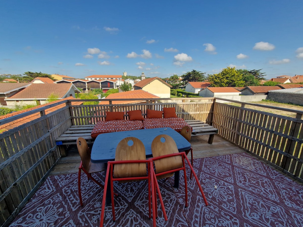 Appartement au cœur de la station balnéaire de mimizan plage A 200m des plages et collé à la forêt landaise. Le centre ville est accessible à pied en moins de 10 minutes Composé d’une chambre au rez-de-chaussée et de 2 chambres à l’étage avec une literie de qualité, 1 salle de bain et 1 WC séparé + 1 point d’eau à l’étage Vous disposerez d’un salon cuisine tout équipé de 20m2 et une terrasse de 40m2 avec barbecue et salon de jardin à disposition promettant de belle soirées vue sur la forêt