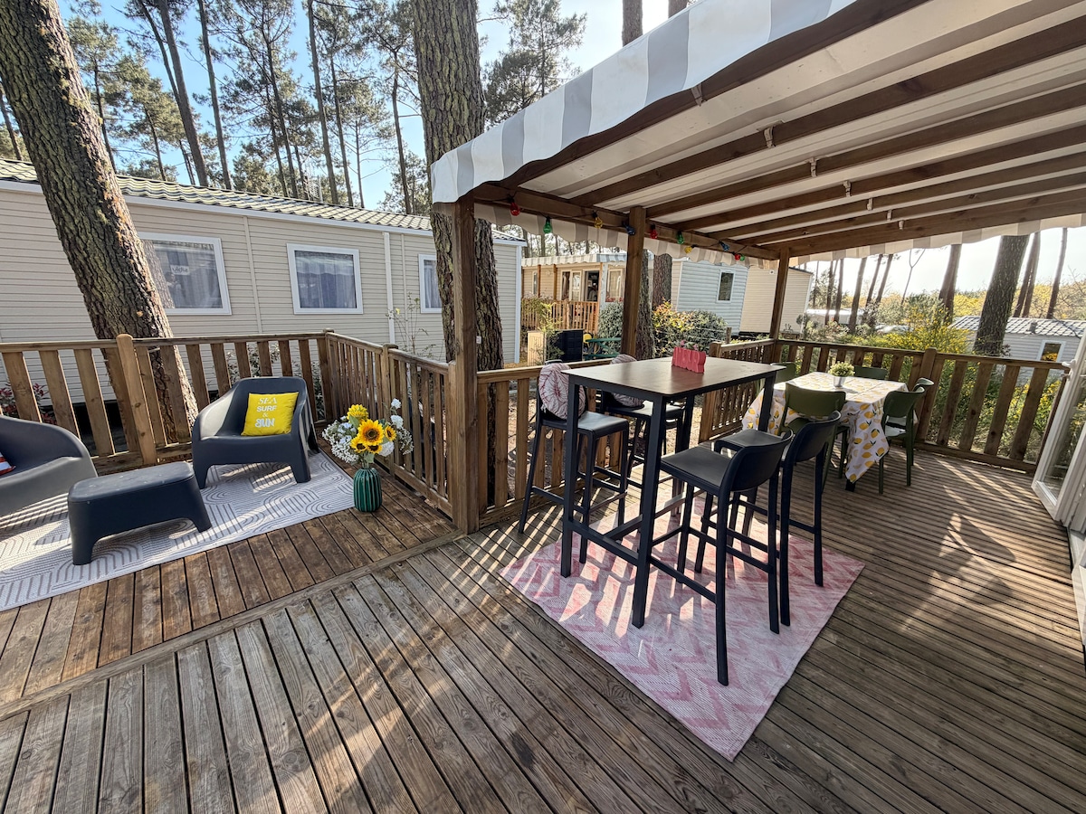 Ce superbe mobil-home de 2023 idéalement situé sur le camping La Plage Siblu 4*, près de la pinède et à quelques minutes à pied de l Océan ainsi que du centre-ville de la station balnéaire deviendra votre maison de vacances favorite. Les + : Un emplacement idéal avec peu de vis à vis. Proche commodités du camping (piscine, salle de sports, Epicerie) jeux et livres mis à disposition Sur simple demande : prêt d un lit parapluie, d un rehausseur de chaise pour enfant et d un réducteur de WC