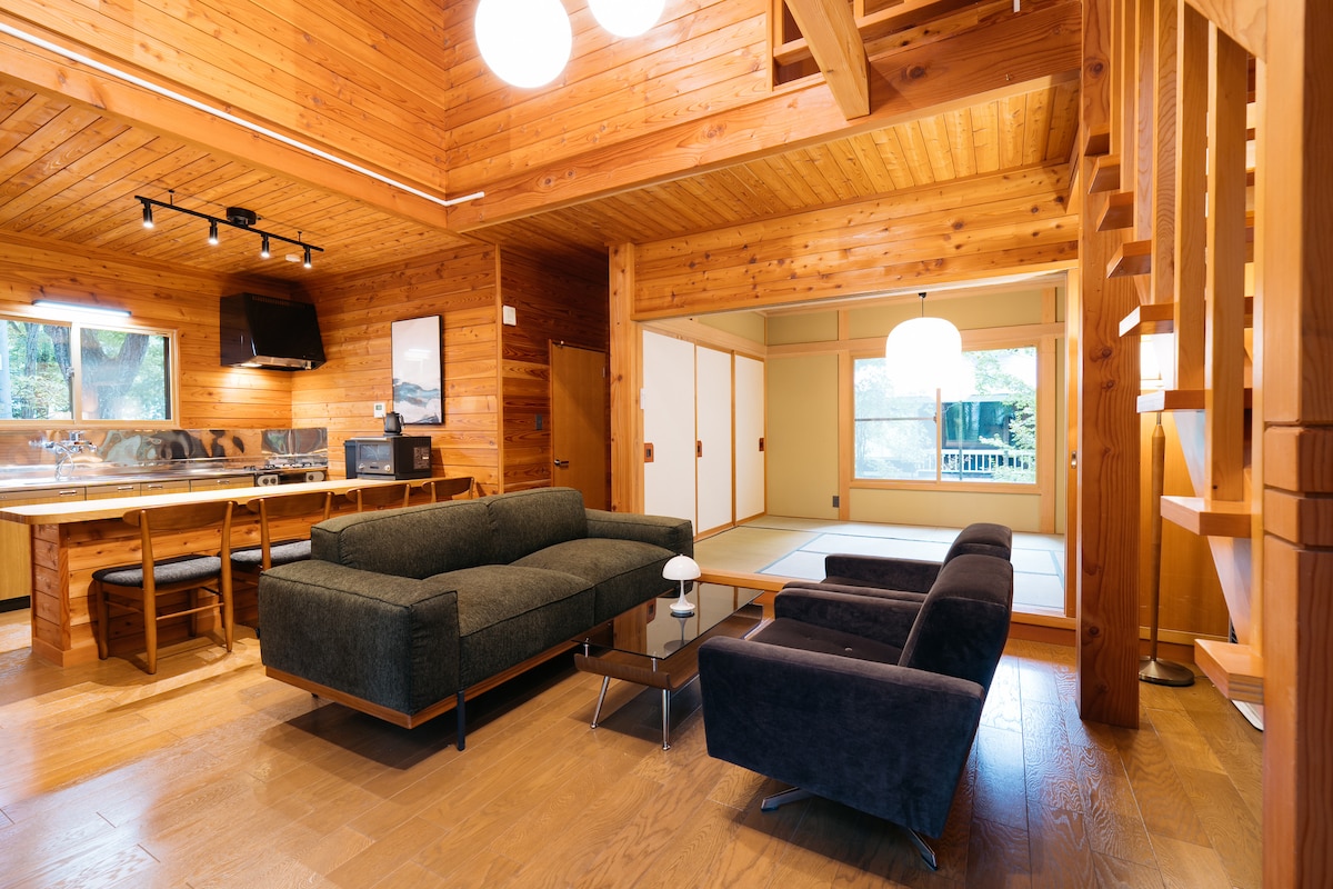★Reopening Dec 2025: New HARVIA Sauna! THE FOREST SAUNA Kitakaruizawa Escape to a private forest hideaway with no neighbors. 【 Forest Sauna Experience 】 Enjoy our new panoramic barrel sauna, natural cold bath, and infinity chairs on a spacious deck. (Outdoor bath closed in winter). 【 Amenities 】 ・Free BBQ set & premium drip coffee gear. ・80" projector, full kitchen, washer/dryer. A truly secluded retreat to reset your body and mind away from the city. Relax with a late 11:00 AM checkout.