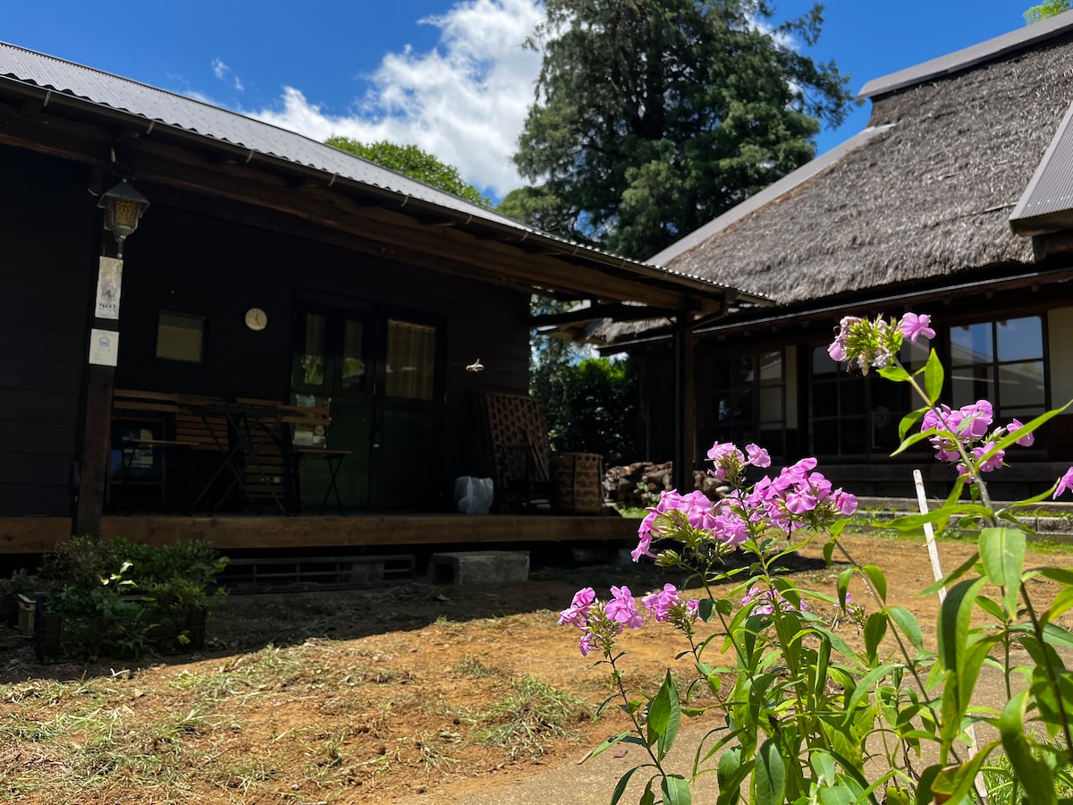 宿泊先「下村(したむら)のはなれ」は中央線藤野駅から車で約20分程度の所で、山梨県上野原市と神奈川県相模原市緑区の県境にあります。都会から車で1時間余りで、自然豊かな里山ののどかな風景が広がっています。「下村のはなれ」は我が家の屋号から名付けました。 宿泊用の離れはコンパクトながらプライベートな空間を確保でき、ガーデンルームからは四季折々の風景が楽しめます。この地域では、昭和初期にはまだ車が普及しておらず、主に馬、牛、山羊、鶏などを馬屋で飼育して生活を営んでおりました。我が家の敷地内にリノベーションした馬屋があり、趣のある空間となっております。馬屋もゲスト専用スペースです。お子様連れ歓迎、小型犬1頭までOKです。 また、季節限定ではありますが、原木栽培のしいたけ狩り、タケノコ掘り、わらび取り、柚子の収穫などをお楽しみいただけます。自然の中でリフレッシュしませんか。