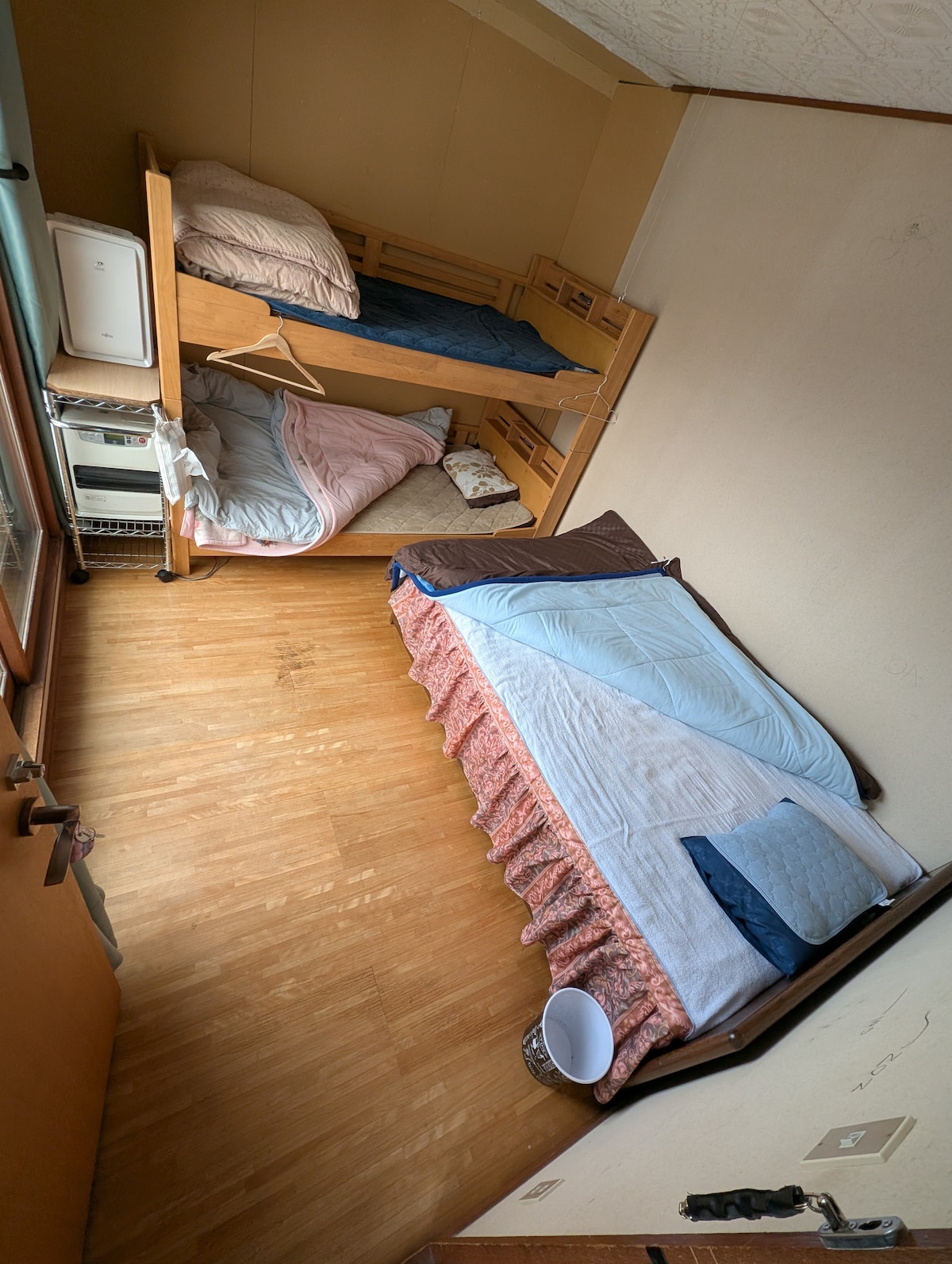 靠近小樽朝里川温泉的一栋可容纳数十人的旅馆 在独栋别墅的二楼,里面有7间独立客房(2位1间,最多可容纳16位) 大型餐厅一间(厨房用具齐全 可聚餐聚会 自己煮饭) 1间浴室(含淋浴&浴缸),1间男厕,1间女厕,洗面台3台 整套出租,无共享,全部专用。宽敞干净。 楼后是便利店(lawson),步行5分钟有24小时营业的大型连锁超市(TRIAL),周边各种饮食店。 步行1分钟有巴士站(直达小樽站,朝里川温泉站) 最近的JR站是朝里駅,车程5分钟,步行30分钟。(预约后提前联系的客人可提供车站接送) 冬天车程10分钟到达朝里川温泉滑雪场,30分钟到达喜乐乐度假村 靠近札幌市,距离新千岁机场1个半小时 下了高速公路朝里出入口马上就到旅馆 大停车场,可容纳中型巴士2台 ,租车,包车都免费停放。 非常适合家庭、商务、好友等各种团体客人入住。