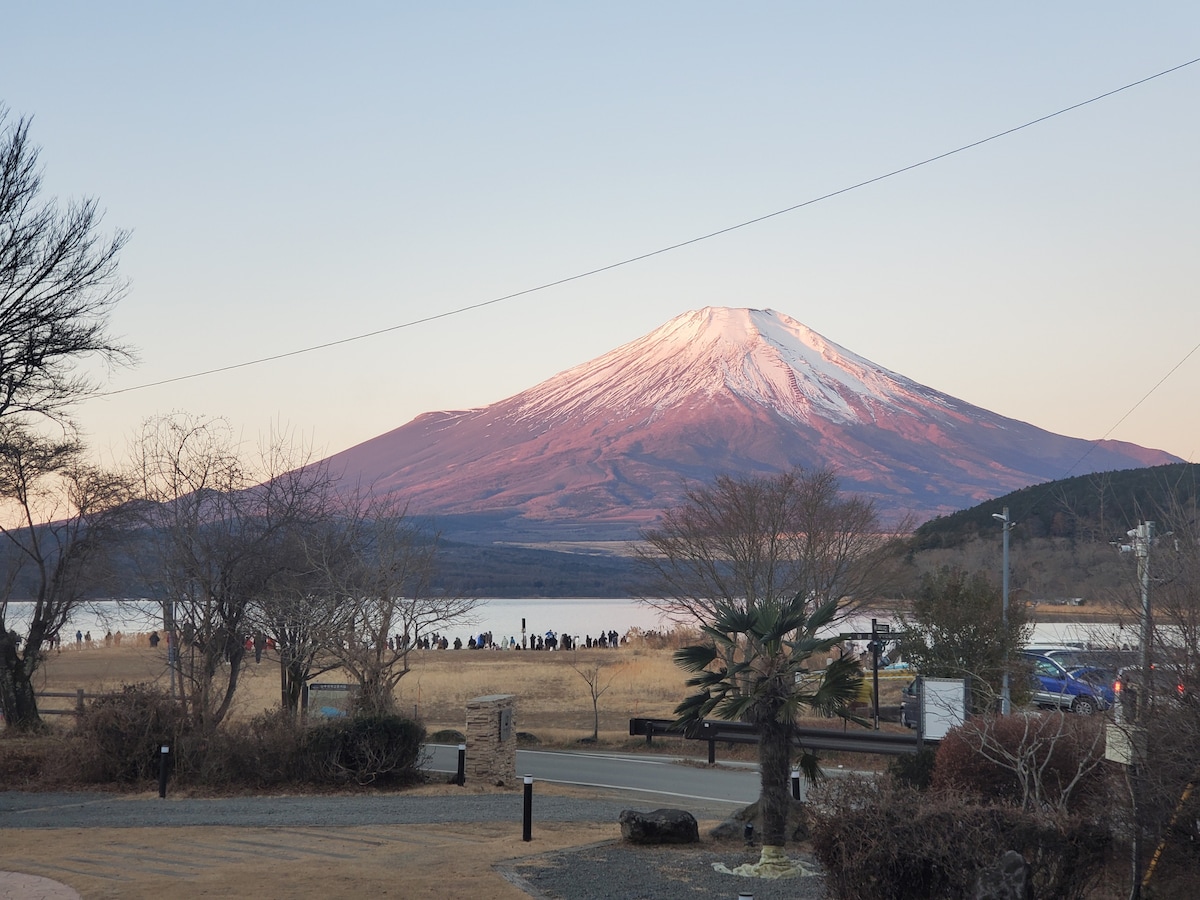 E142富士山河口湖地點非常好,星野度假村隔壁(和室14疊湖景側)新開幕期間送貸切風呂及腳踏車租借