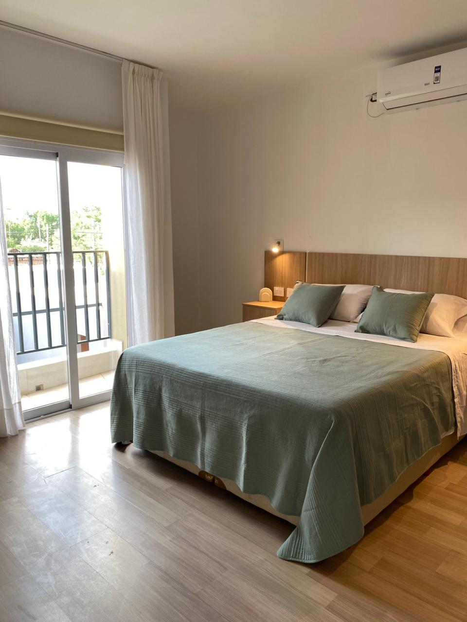 Apart para hasta cuatro personas. Cuenta con un dormitorio con Cama Queen para dos personas y living equipado con futón doble para hasta dos huéspedes más. Está equipada con ducha escocesa en baño, cocina completa, microondas, aire acondicionado en habitación y Wifi de Alta Velocidad (Starlink). El complejo cuenta con piscina, asador y estacionamiento privado