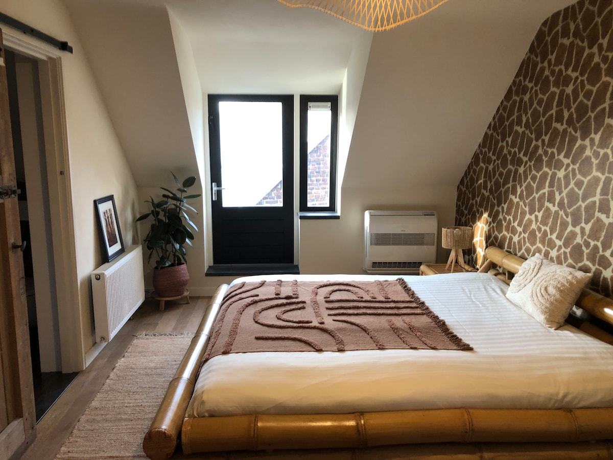 Private bungalow (75 m2) in a wooded area with free parking space. Attractive spacious living room with TV and free wifi, fully equipped kitchen with fridge, Nespresso, stove and all cooking utensils. Bathroom with luxury shower and separate toilet, bedroom with double bed. There is a beneficial sauna (for a small fee). Very suitable for vacation but certainly also for the business traveler. Deurne center on 20 minutes walk. NS station 3.2 km.