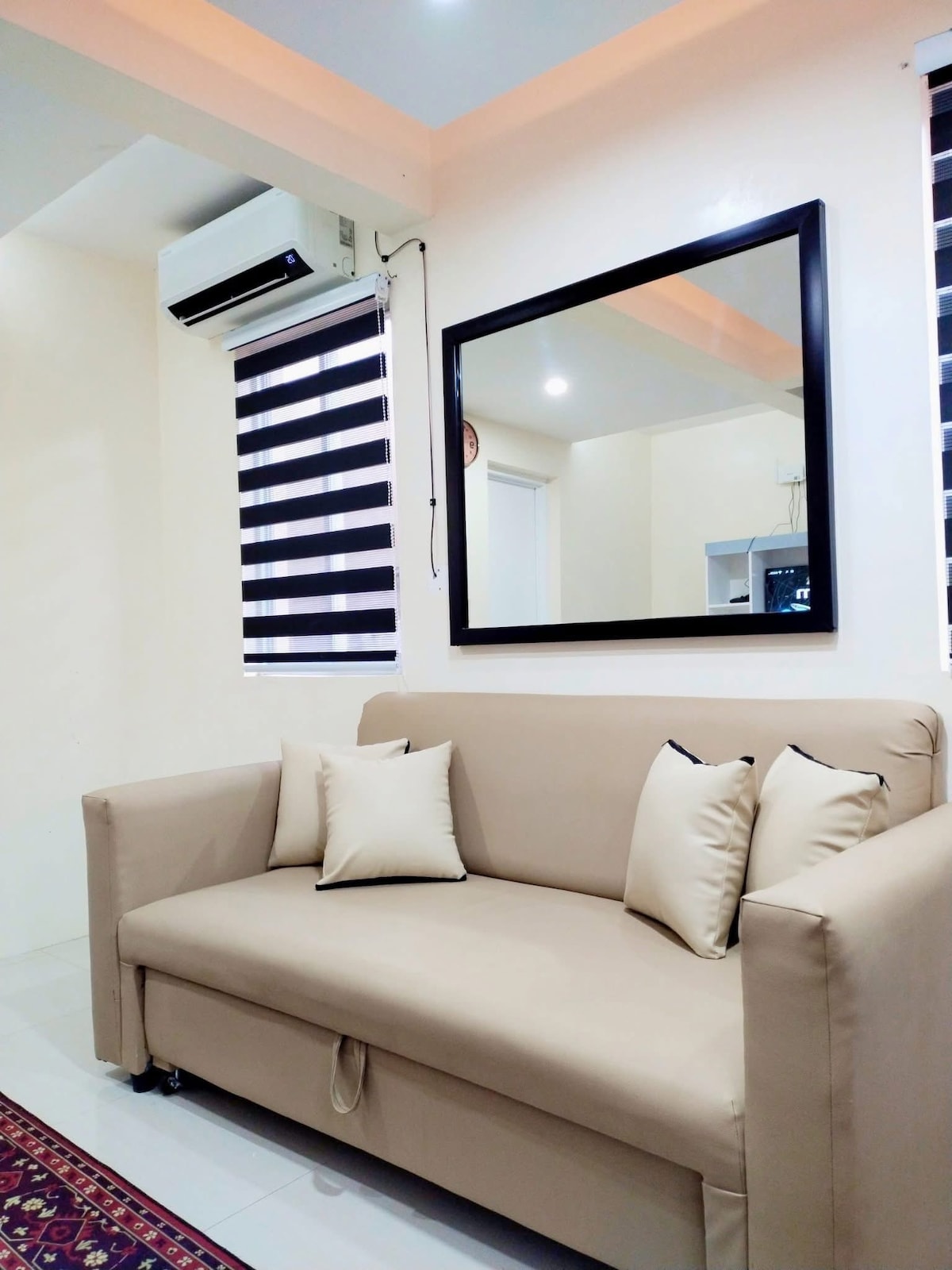 Relax and unwind in this comfortable and spacious one-bedroom condo in the heart of Davao City. Enjoy the stylish Condo and amenities it comes with it: ✅ free Car Parking ✅ unlimited WiFi ✅ 2 smart Tv with Netflix ✅ Washer and Dryer ✅ Cozy Bedroom w/ Queen size Bed ✅ Office desk w/Chair ✅ hardwood Dinning table and Chairs ✅ complete kitchen equipment ✅ microwave, water dispenser, Rice Cooker, water heater And More.