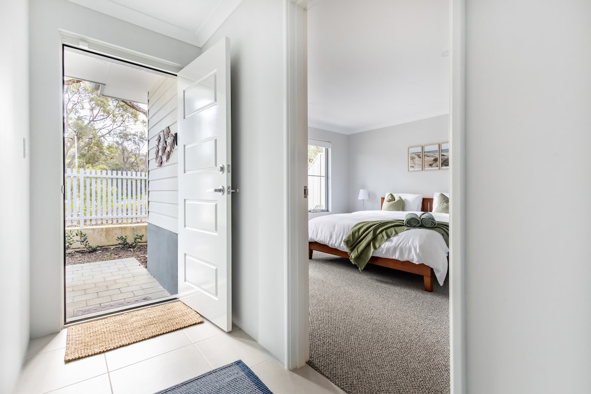 A quiet and private home. The living areas are filled with natural light a feature high ceilings adding to the spaciousness. It is equipped with modern fresh colored furnishings to give a holiday and relaxed vibe. Make a coffee and unwind on the couch , watch a movie or relax on the double day bed with a book or work at the desk. Sit outside the courtyard and enjoy the ambience. There is a fully equipped kitchen with all appliances to make entertaining a breeze.