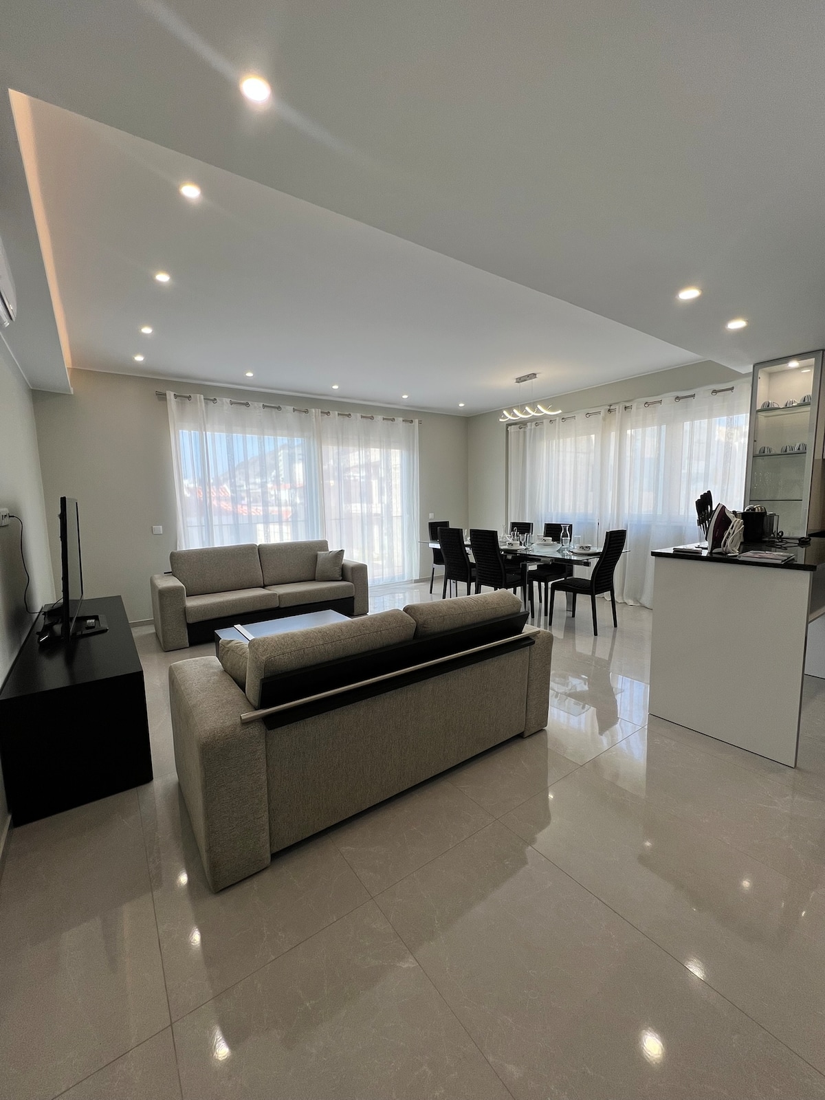 Appartement moderne, climatisé, avec connexion internet par fibre optique, idéalement situé à Mindelo avec une vue imprenable sur la baie et "Monte Cara". Offrant un espace parfait pour se détendre. Deux chambres sont mises à disposition avec une salle de bain possédant une douche à l'italienne (pompe pression d'eau ajoutée) La cuisine est entièrement équipée, pour profiter de tout le confort nécessaire. L'immeuble est sécurisé, accès facile : visiophone, ascenseur et parking extérieur.