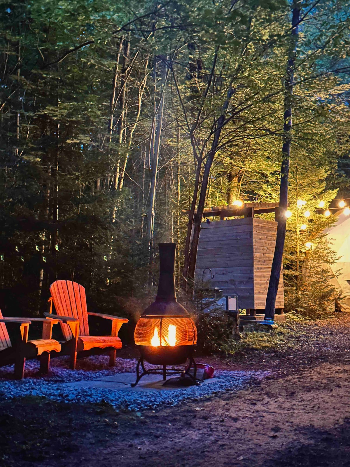 Welcome to our private campsite in Utopia, ON. Our family’s glamping dome is your chance to experience a unique getaway surrounded by the sights & sounds of nature. Amenities include camping essentials & some glamping perks: king size bed, bbq, fireplace, Indoor incineration toilet, soap & water, outdoor shower (summer only), kettle, cooking utensils. Nearby is Purple Hill Lavender Farms, Drysdale's Tree Farm, Tiffin Conservation Area, Nottawasaga & golf courses. Wasaga Beach is 30 min away.