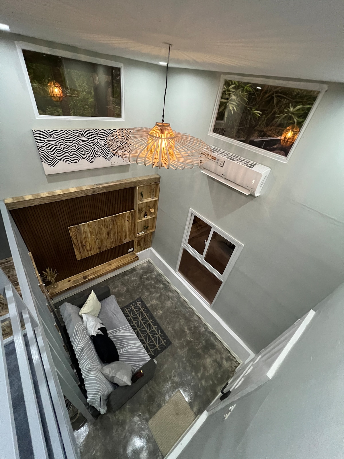 The accommodation has all the things you need for modern living but at the same time it is designed to encourage you to spend more time outdoors. It is located inside the San Luis Agriforest Park, a project in progress that aims to reconnect people with nature. The park offers a forest bath experience, bird watching, or dipping in the cold river nearby. You can wander freely in its luscious pathways, or finish your 10k steps, or simply allow the vibe of nature wash over you.