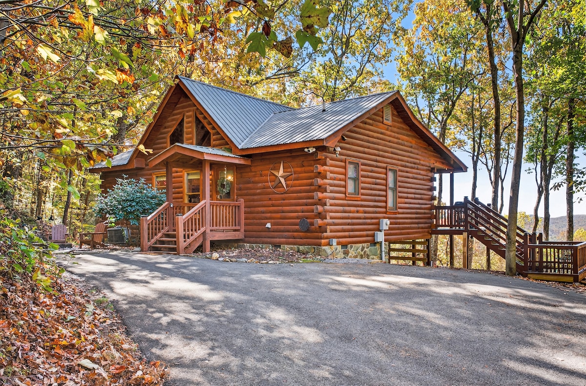 * 3.5 miles to Blue Ridge * Hot tub * Shuffleboard, arcade & fire pit * Porch with swing, rocking chairs & dining * 3 Levels - Loft, main & lower * Log cabin in a lovely wooded setting This cabin is in a wooded setting yet close to all the amenities the Blue Ridge area offers! Enjoy the Scenic Railway, Mercier Apple Orchards, Lake Blue Ridge, the Toccoa/Ocoee River, hiking, restaurants, shops & more! After a fun day, soak in the hot tub, play shuffleboard, and relax in the pretty surroundings.
