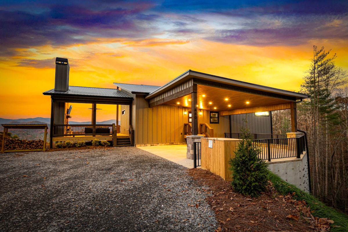 Step into the luxurious 2BR 2BA oasis - a scenic and tranquil property in the Blue Ridge Mountains. A relaxing escape with breathtaking mountain and forest views, nestled 20 minutes from the towns of Blue Ridge, McCaysville, and Murphy, with many attractions and natural beauty. ✔ 2 King Bedrooms ✔ Open Design Living ✔ Fully Equipped Kitchen ✔ Hot Tub ✔ Wood burning indoor fireplace ✔ Patio (Gas fireplace, TV, Heater, Grill, Wet bar) ✔ Sonos Audio system ✔ High Speed Wi-Fi ✔ Parking