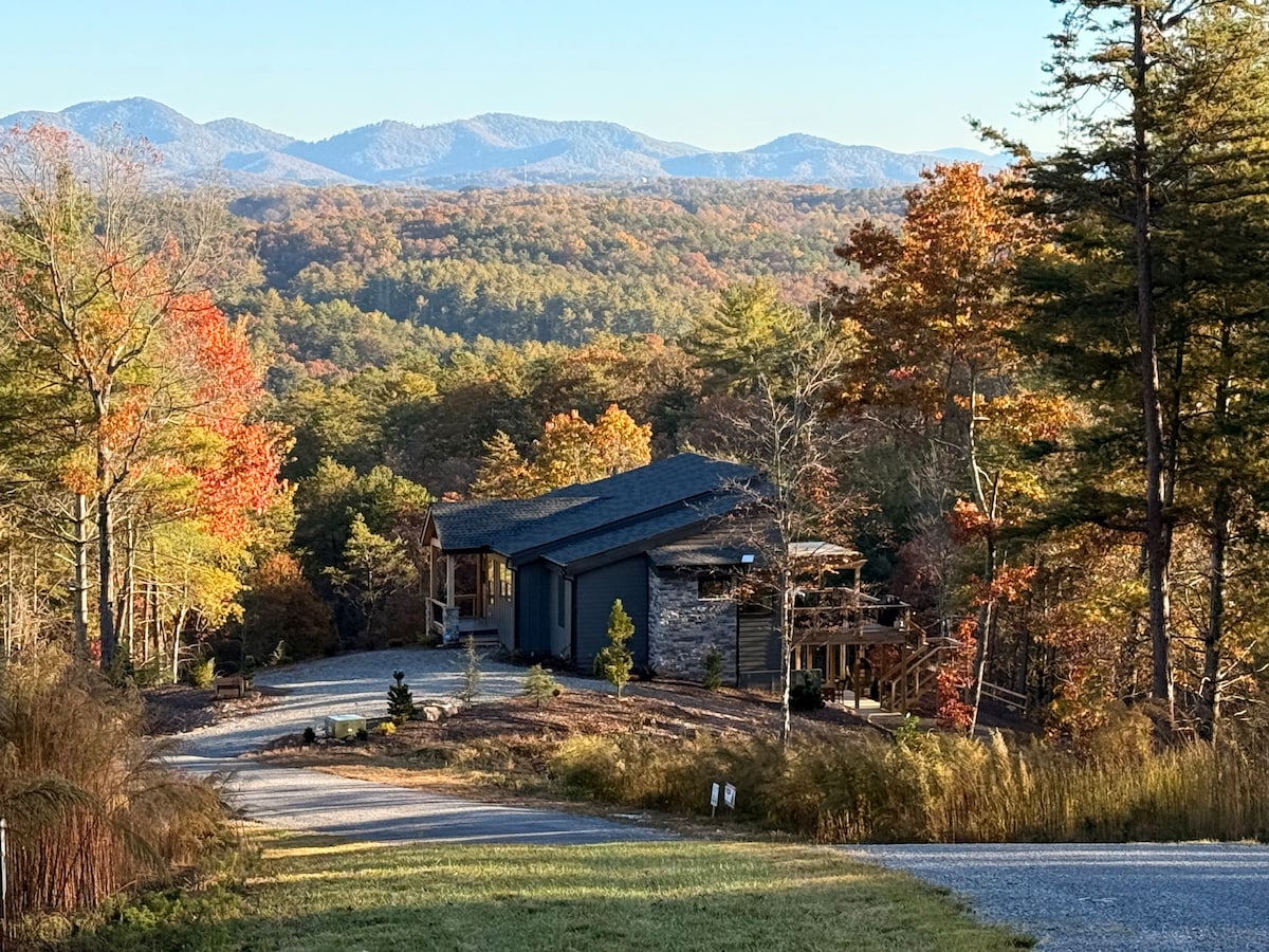 The Cedar Grove Haven brings a fresh new vibe to your next Blue Ridge mountain getaway! Every inch of this newly built house was intentionally designed to provide YOU with rest and rejuvenation of your mind, body, and soul. Large windows provide a picturesque wooded scenery and abundant natural light. Head outside to enjoy a soak in the spa, a movie by the fireplace, dinner on the gas grill, or playing a fun game of shuffleboard! Only a short 10 minute drive to downtown Blue Ridge!