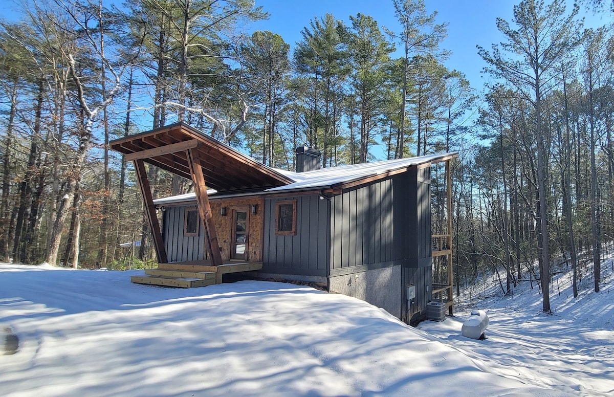 Relax in this peaceful and private modern space. A quick drive from the city and you've arrived at this escape from the hustle and bustle. Yet when the mood strikes for great restaurants, trendy bars/breweries, and unique small-town shopping you're only minutes away from downtown Blue Ridge. In this completely updated cabin you'll experience total privacy in the indoor hot tub, gorgeous screened in porch with swing bed and tv, huge walk-in shower, serene firepit, new grill & firepit table.