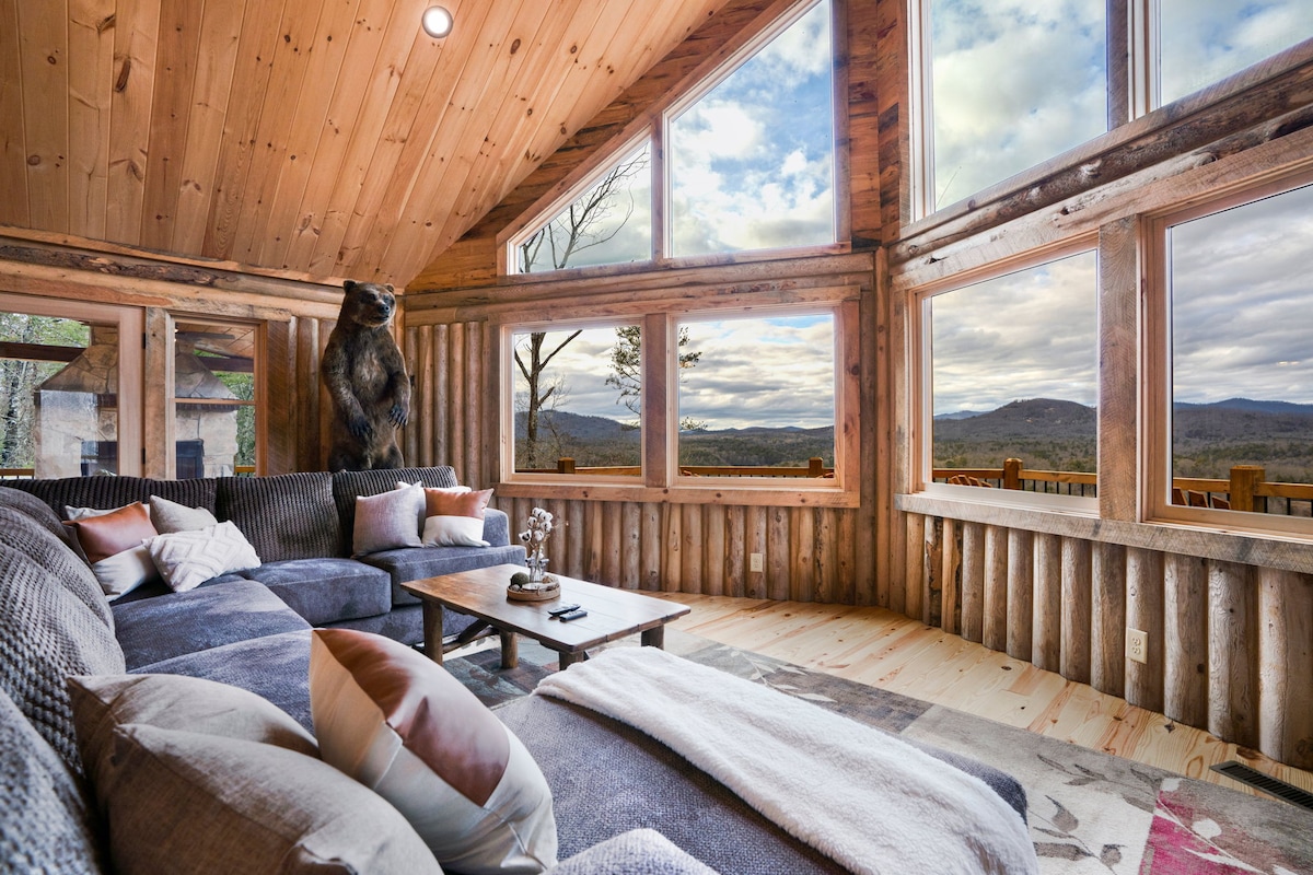 ✔ Hot Tub - jet spa 7-person! ✔ Minutes from downtown Blue Ridge ✔ KING beds in both bedrooms ✔ Indoor gas & outdoor wood fireplaces ✔ Welcome Snack Basket! ✔ Tesla Universal EV Charger! ✔ Smart TVs throughout Luxurious tree-side cabin by @minwicabins with contemporary style and rustic charm. Enjoy long-range mountain views, plush bedrooms with spa-like bathrooms, and cozy fireplaces. Perfect for couples and small families seeking a serene mountain retreat just minutes from downtown.
