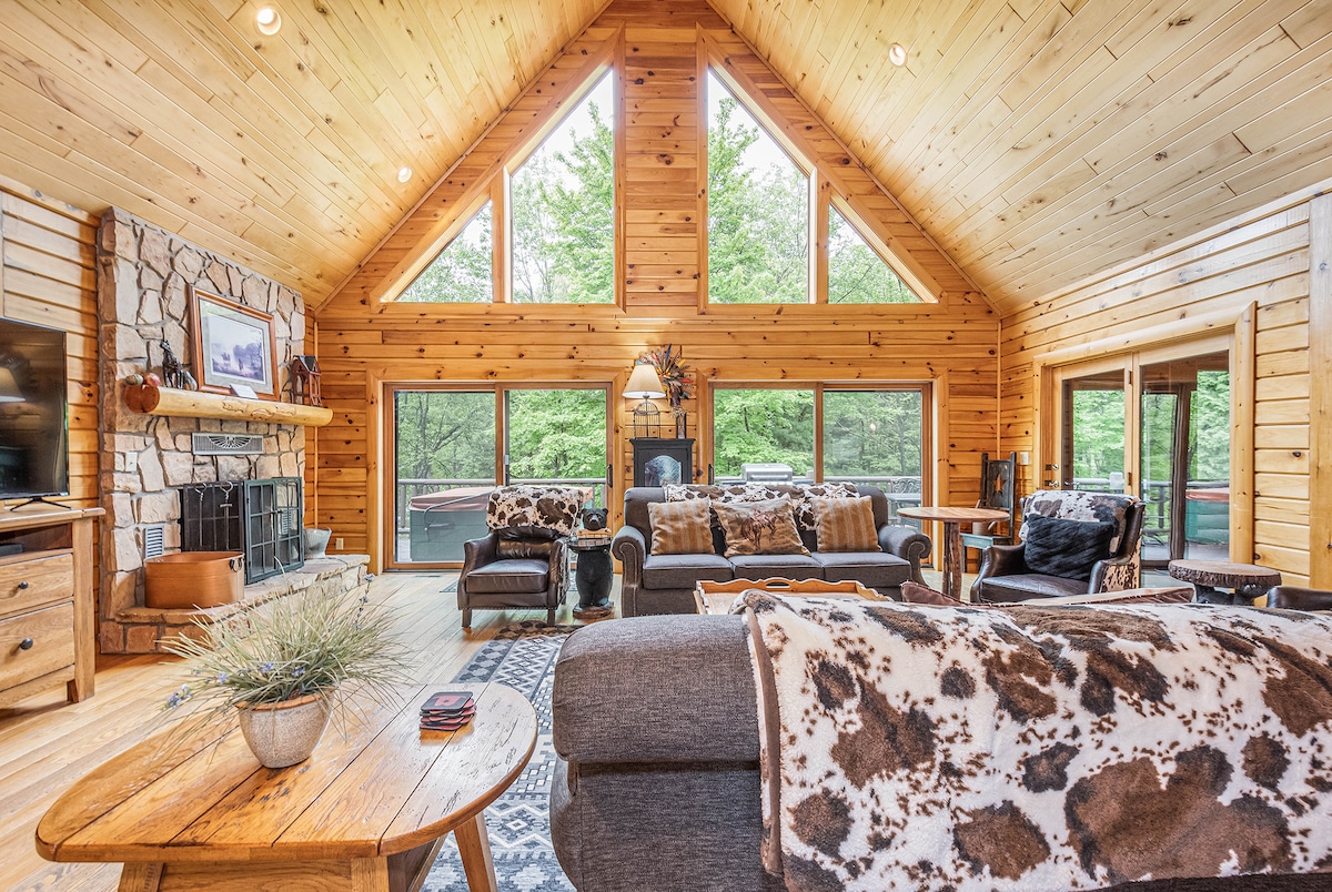 The Mustard Seed is a charming little cabin nestled in the quiet subdivision of Sunview Heights Exposed beams and cathedral ceilings add to the rustic charm. The home's well-equipped kitchen allows you to prepare your own meals. The two bedrooms on the main level each have queen beds. There is also a full bathroom for guests. Upstairs, you will find the loft bedroom that is outfitted with a queen bed and sitting area. A bathroom and even a twin roll away bed if extra bed space is needed.